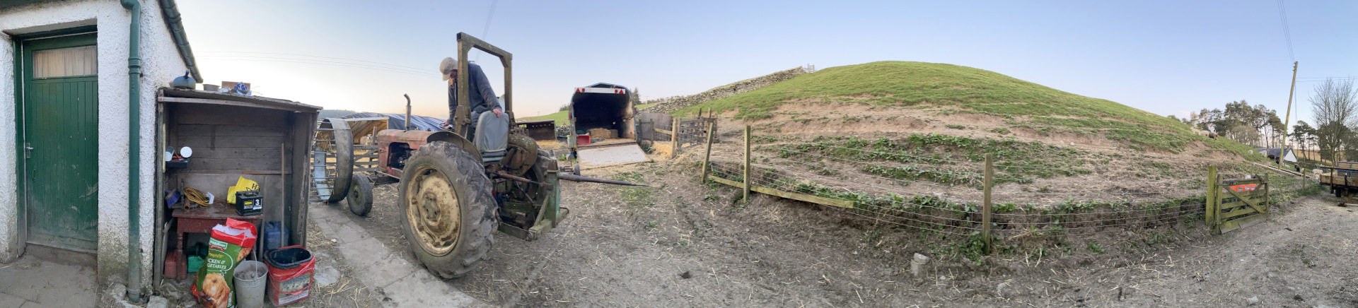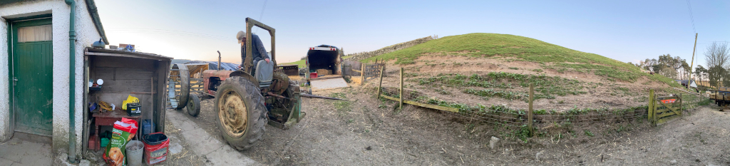 This afternoon the polytunnel was empty, as we loaded and transported the last ewes and lambs to grass keep. Work now begins mucking out the yard, the manure will have to be taken uphill via the tractor tipper; there is still muck to disperse from last year.