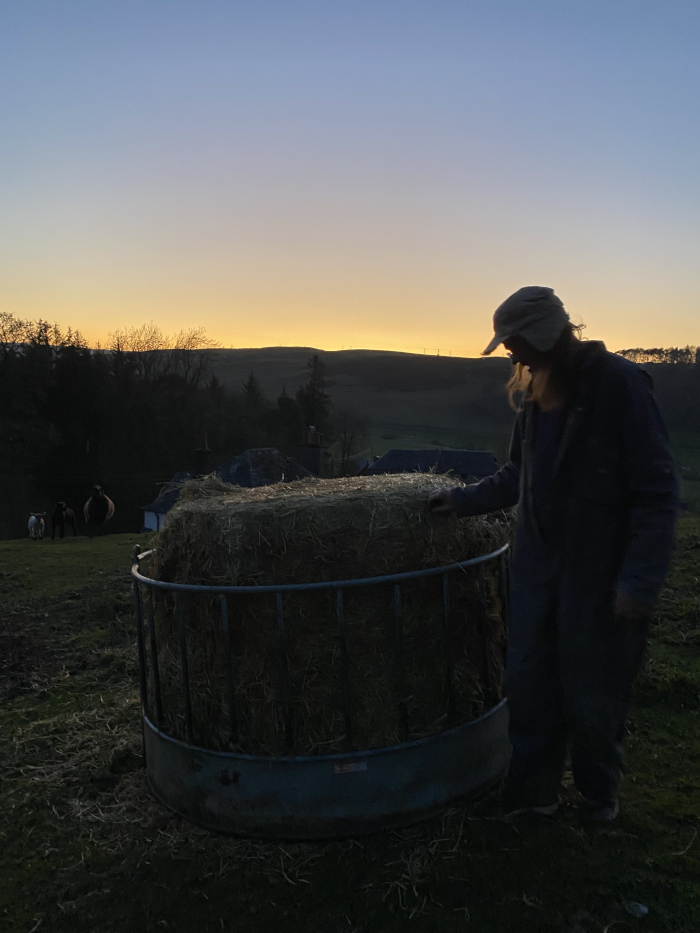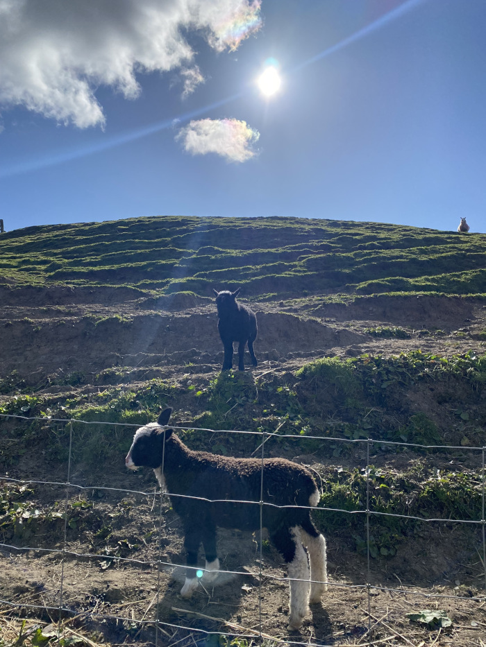 Returning to the farmhouse, two cade lambs came from the hill to see me, asking for milk. We're weaning them off the bottle, from twice to once daily, substituting with lamb pellets, which they're happily eating. They are also lightly grazing on fresh grass and silage.