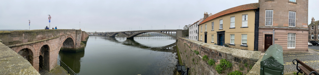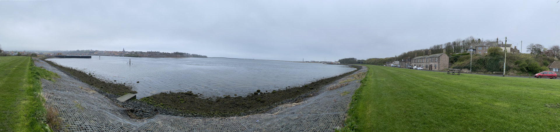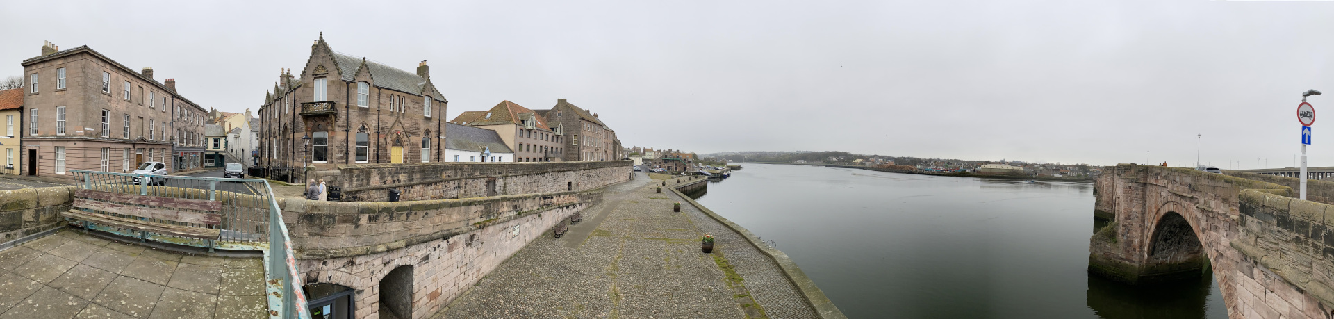 Last night, Charlie took his car to Galashiels to receive a friend named Lynney; she's staying at the flat for a while. Today we're going out for a drive to the coast, a cloudy grey sky looms overcast, but the weather does not decide where I go. We drove through Kelso and Coldstream to get to Berwick on Tweed, it felt awesome to see the river I'd enjoyed so much meet the sea. Charlie popped into a café to use the toilet, then we ate cake and drank hot coffee.