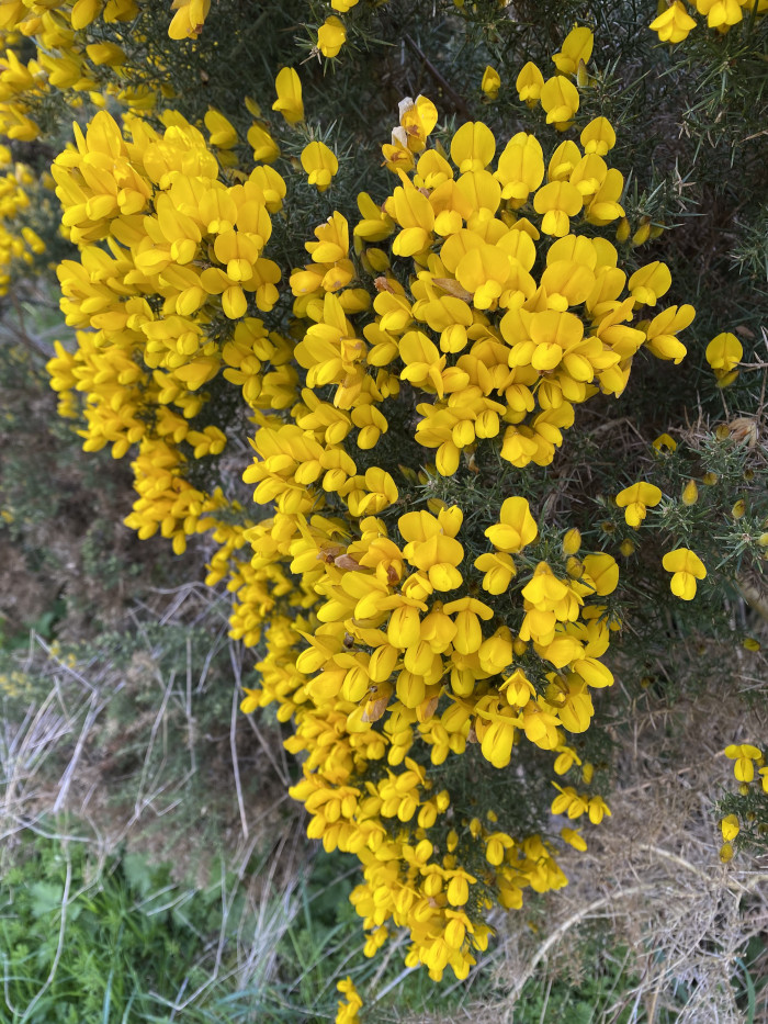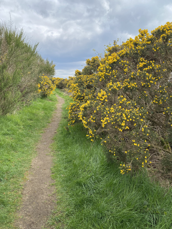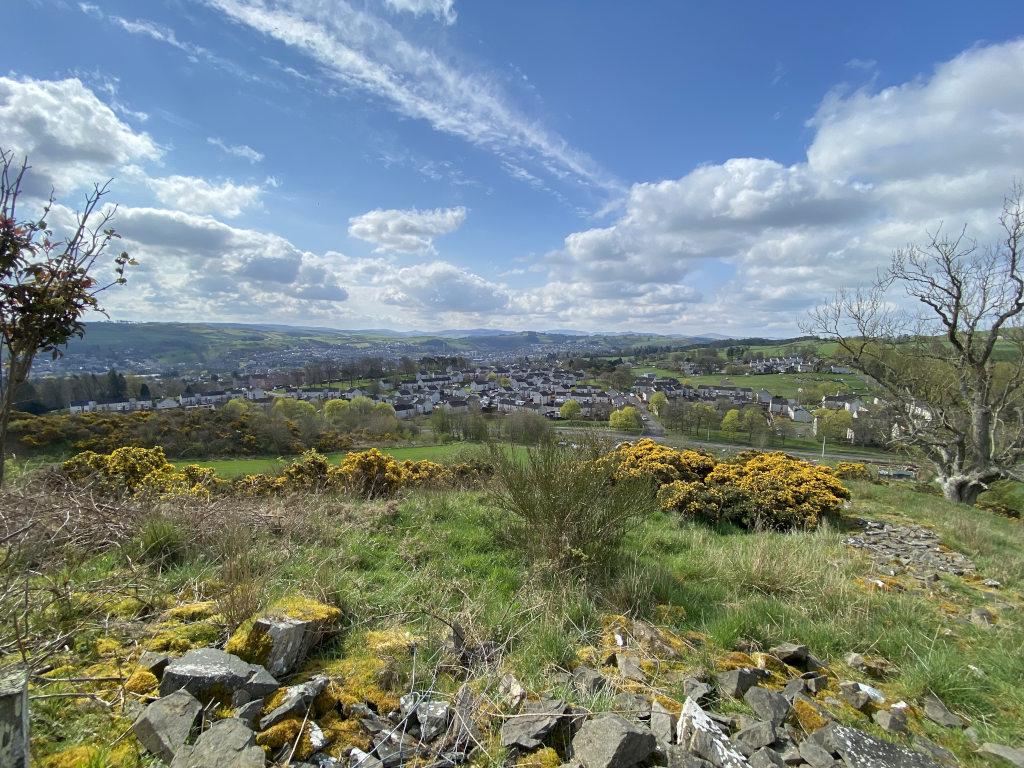 In the morning I walked to the summit of Galalaw viewpoint along the southside of the hill. The yellow flowers of the hillside gorse were bright, and spring was apparent everywhere, the panoramic view of Hawick is really something.