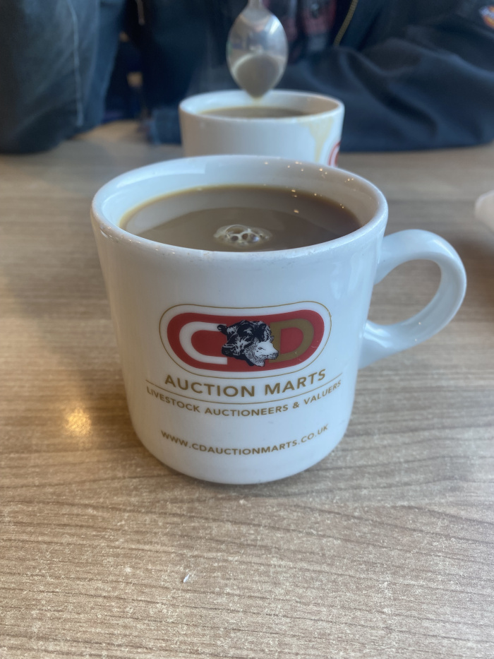 This morning I risen at half past five to help Charlie take three ewes to the market in Longtown. Although the scenery is something to see the drive is boring, it took us forty minutes to reach Longtown, passing through Langholm on the way. After Charlie unloaded the Ewes and handed the movement book, we visited the market cafe for a cooked breakfast.