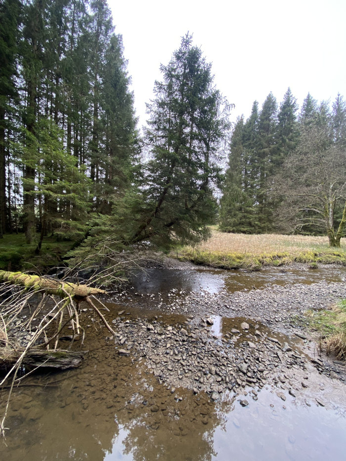 This morning we drove out of Hawick, down the A7 turning off at Langholm and onto the road to Lockerbie. We turned right at Bentpath, over a bridge, left at a church, then turned right about one-thousand yard towards the North. We pulled into a car park and proceeded to walk on foot towards Greensykes bothy.