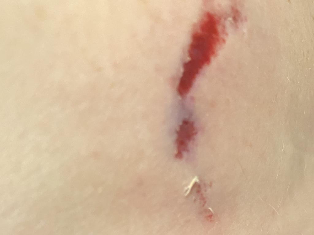 This evening the loopy farmhouse rescue dog bit his teeth into my forearm for attempting to lead him through the front door; the dog is absolutely nuts with phobias due to his previous owner attempting to terrorise him into being a sheepdog.