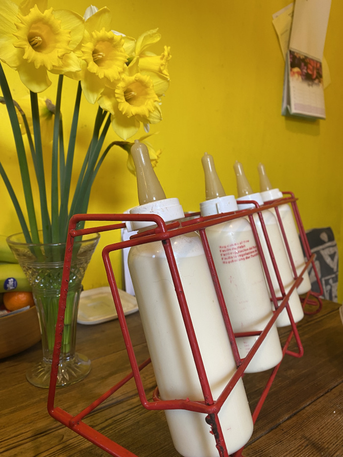 Cade lambs are bleeting when they hear my voice, they are probably hungry as they are due to be bottle fed at around 9am; we've these cade lambs nibbling on pellets so milk will be slowly withdrawn over a period of time. There are still seven ewes in lamb, but have yet to give birth, so the season isn't over yet!