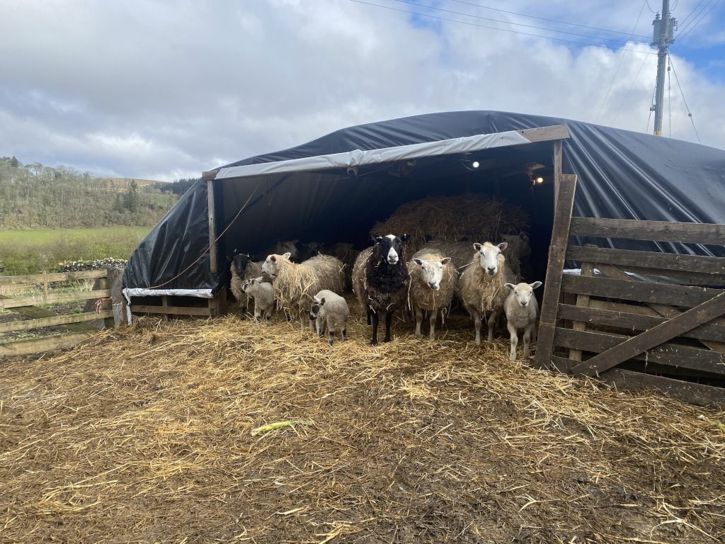 Charlie also placed elastic bands around the tails, one tup had a band placed around his gonads; he says the tups are sold on to become Kebab meat; spice is needed to be added as they taste horrible. Its warming to see the sheep appear from the shelter of the polytunnel after a storm; the ground is sponge drenched wet. They all have unique characters, and this is a mix breed flock, with Teeswater, Zwartble and Texel sheep. BTW they won't eat leeks.