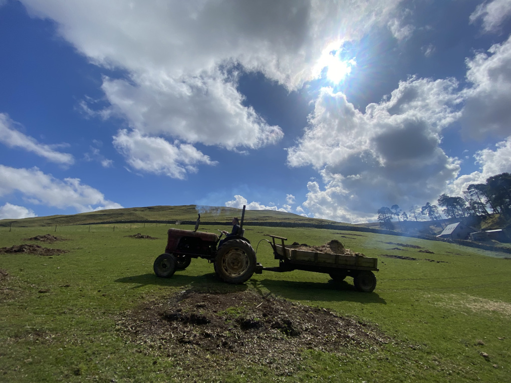 We moved the sheep around, from grass keep, after fetching the sheep trailer from Charlie's work place. We searched the charity shops around Hawick for a dress, as I only have one dress that isn't full of holes; my walking boots are in a bad state also. On a positive note, Charlie has bought me a pair of wellies, and also I pair of Crocs, that I have begun wearing today at the farmhouse. Charlie fixed the tipping trailers hydraulic pipe then proceeded to dump muck onto the paddock; sixty year old tractor, bellowed with smoke during the ascent.