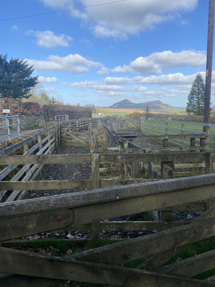 The new grass keep has a sheep run, and a lovely view of the Eildon hills, I checked the manger to see if there was water for the arrival of the ewes and lambs.