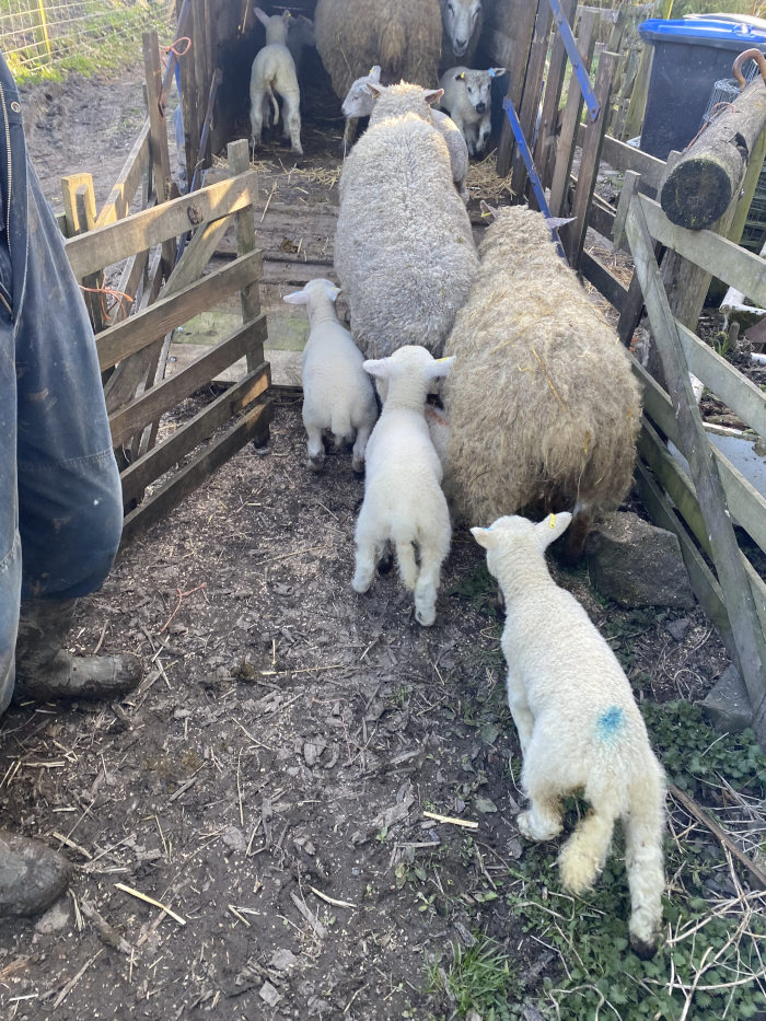 One of the ewes came into lamb, so we missed the market at Longtown today. She birthed another ewe and also a tup, the mother ewe is a teeswater freak, oversize, so Charlie is very happy as he'll have a valuable tup for breeding the flock.