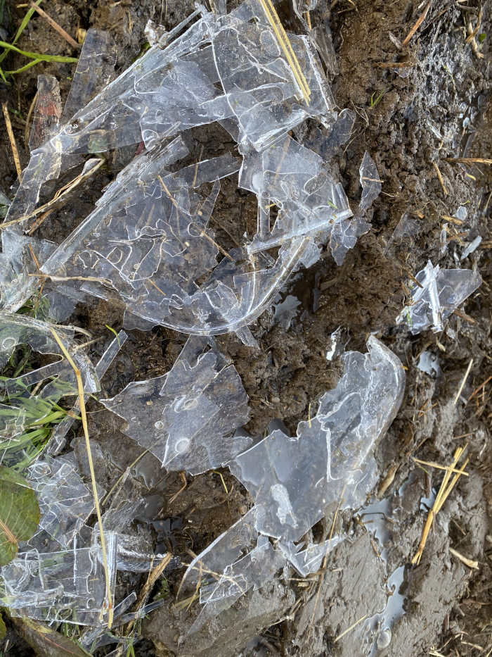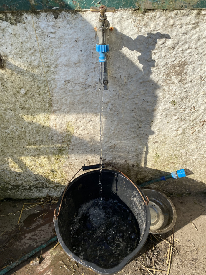 It's cold this morning, ice upon the ground split from water butt, but water is flowing from the outside tap; remembering how impossible this was just a few weeks back. Today we are transporting lambs and ewes to grass keep.