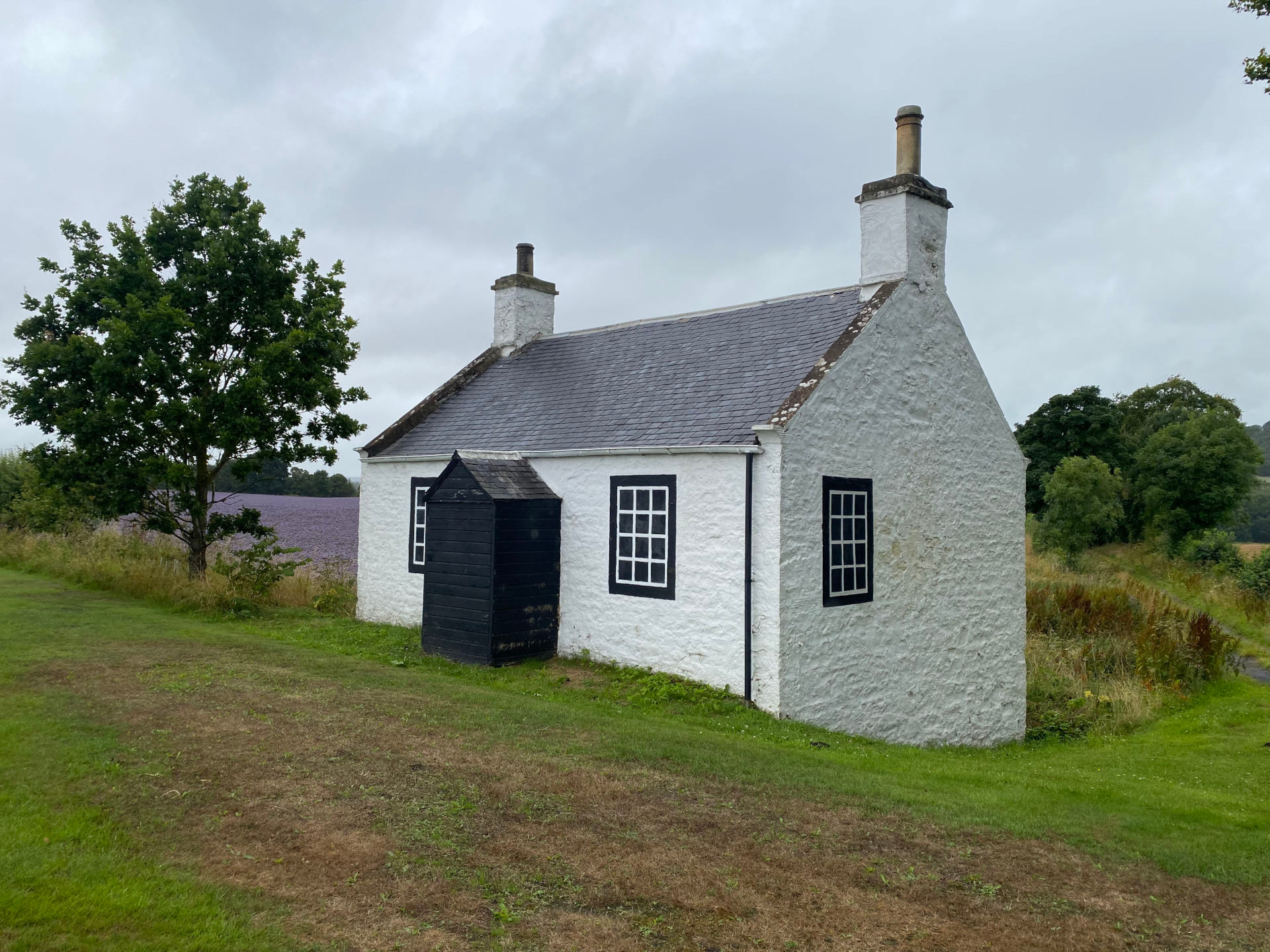 Charlie promised the owner a couple of fleeces, so today we delivered them. Charlie and I went to a wool studio in Berwick on Tweed months ago. I convinced Charlie to stop the car so I could take a picture of a blue flower field.