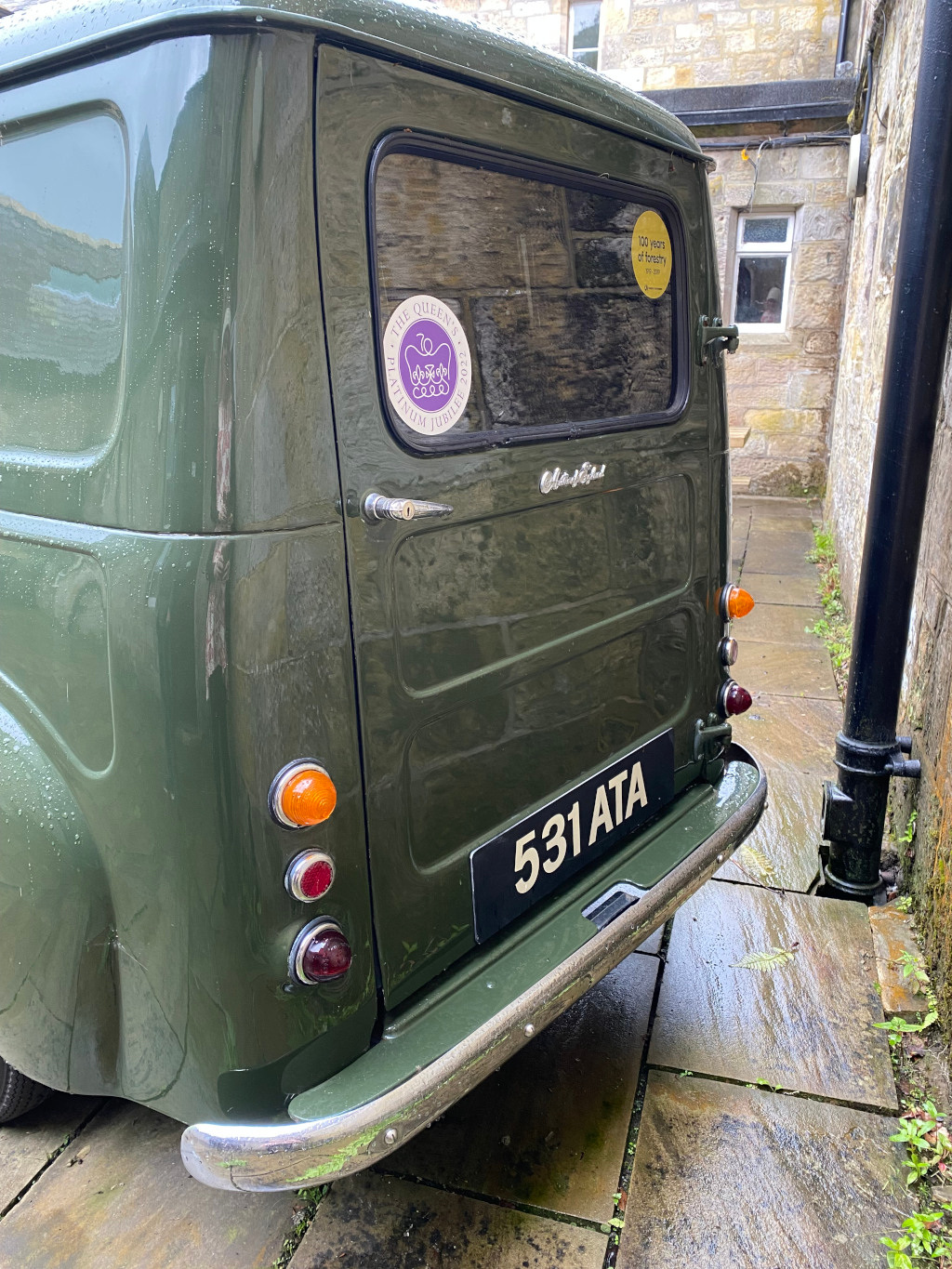 When we decided not to go to the Braemar Highland Games, I discovered that the royal family was there, which made me feel sick. After taking care of sheep at both grass keeps, Charlie rounded up and sheared the last Teeswater ewe while it poured rain. I remained in the warm car, observing.