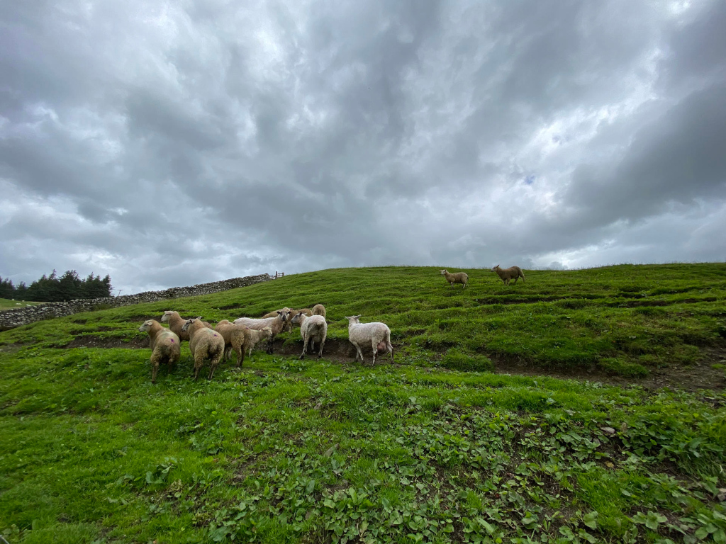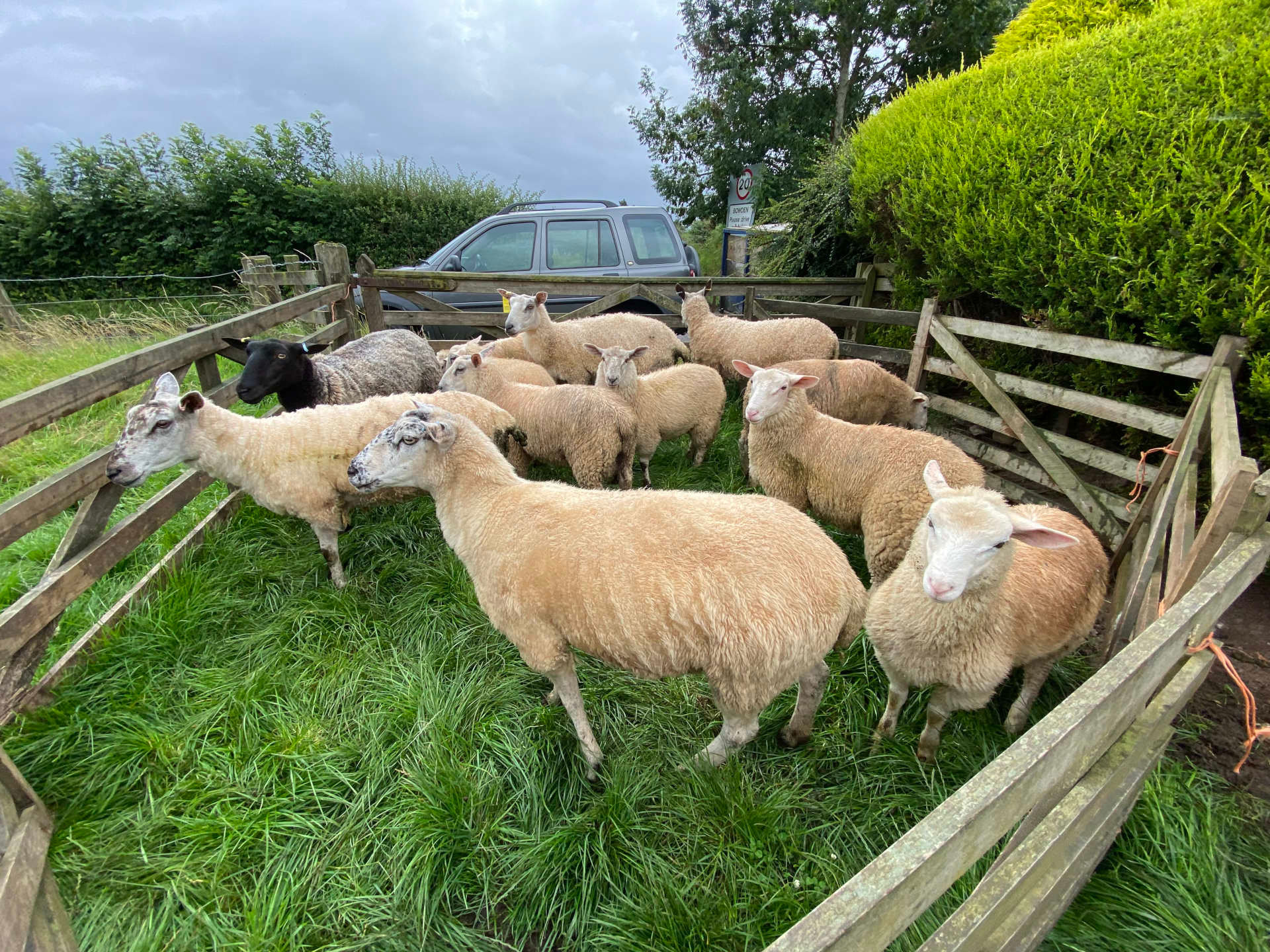 Six tups were rounded up at our second grass keep, which is near Bowden. They were taken to the farmhouse paddock to be held until they are taken to auction on Tuesday. This year, there are far too many tup lambs, so we only want to keep a few ewe lambs.