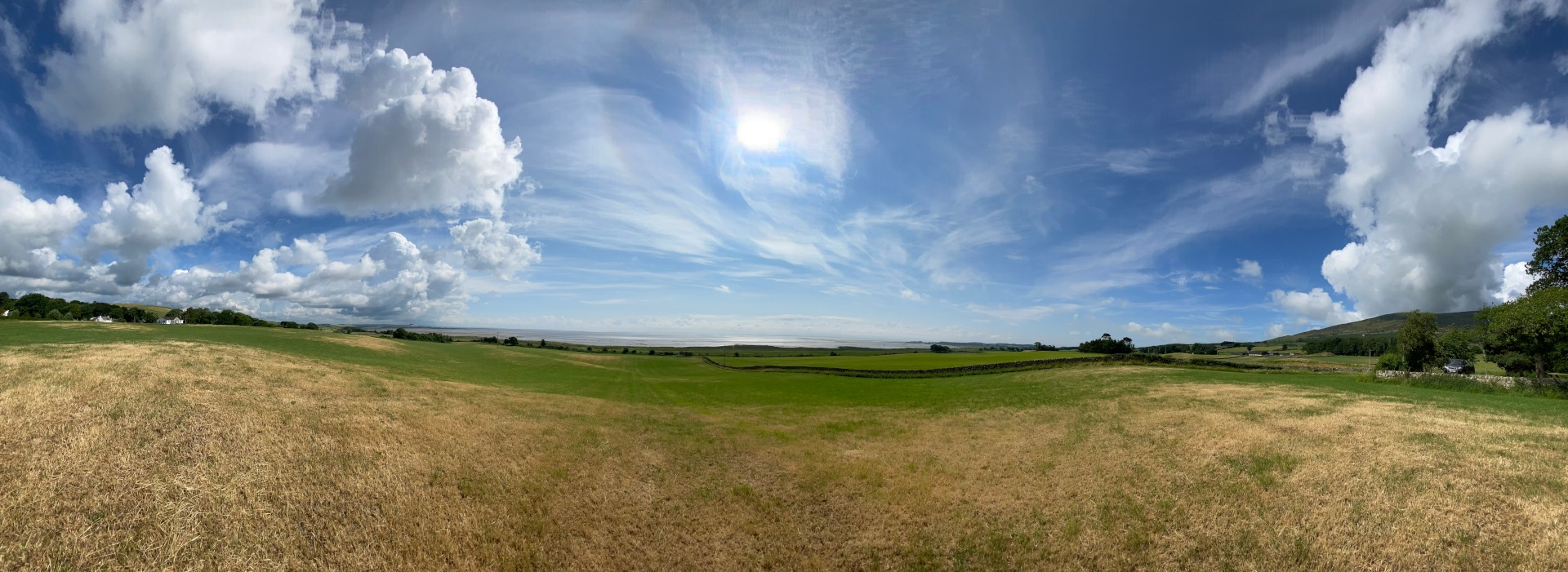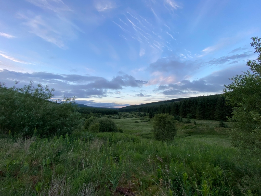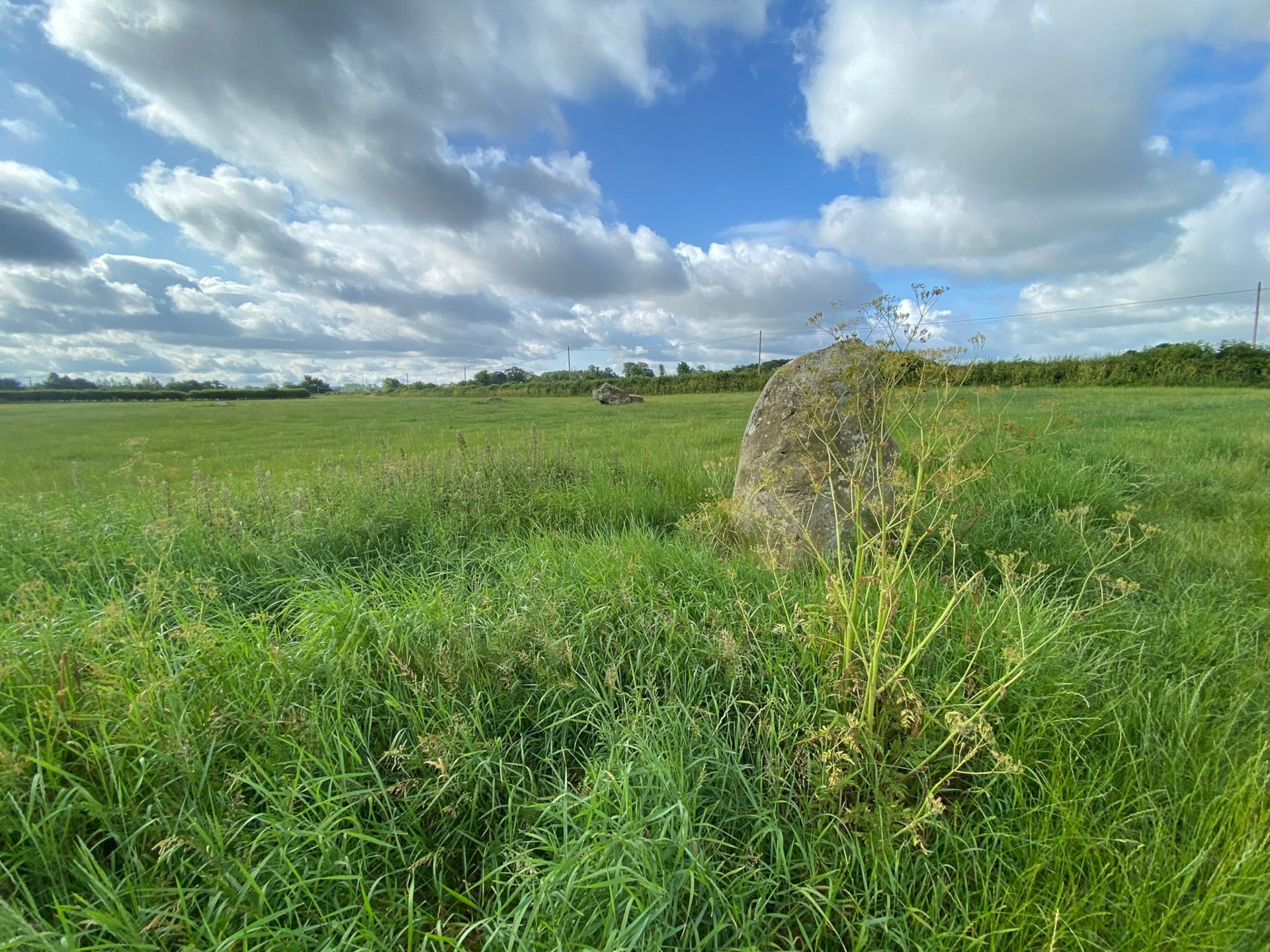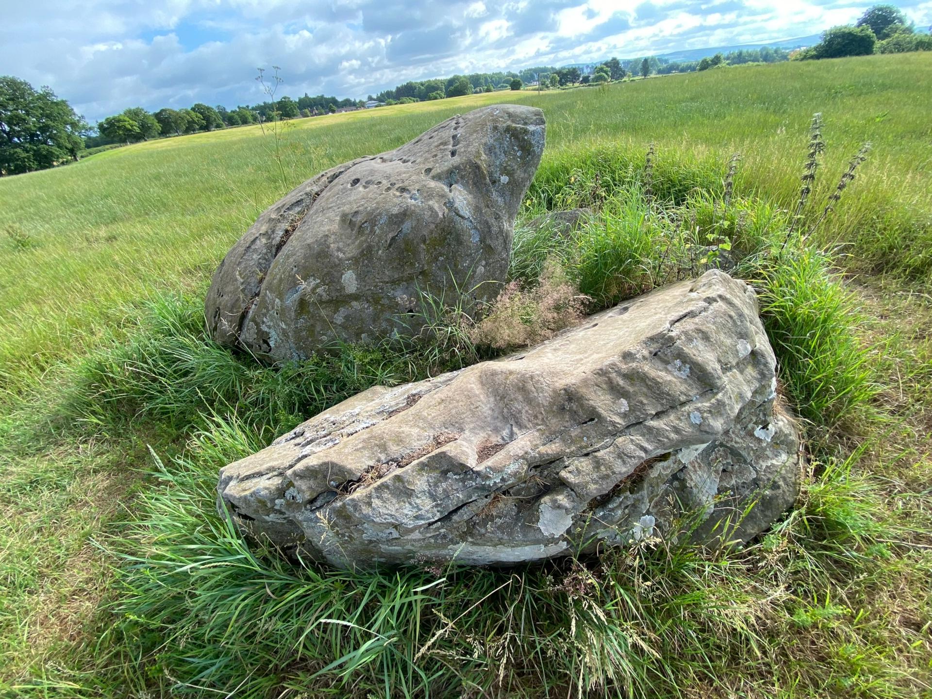 The stone circle was reputed to be the largest in Scotland. We parked in a small lay by north, from an information plaque walked five hundred yards though a grass field into the centre of the circle. We arrive five hours after sunrise, other than deflated blue and gold balloons tied to a gate post there were no other indication of people having been here.