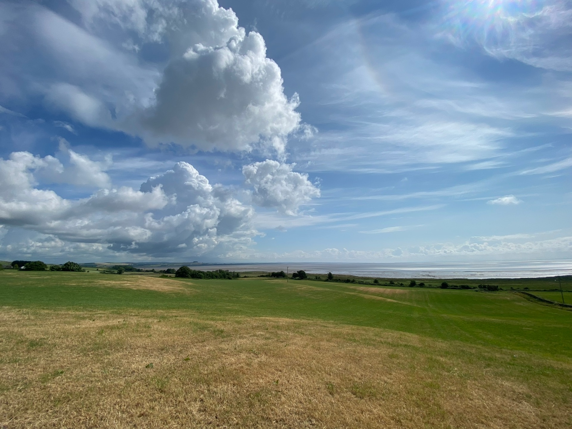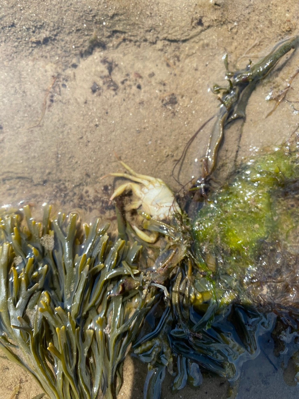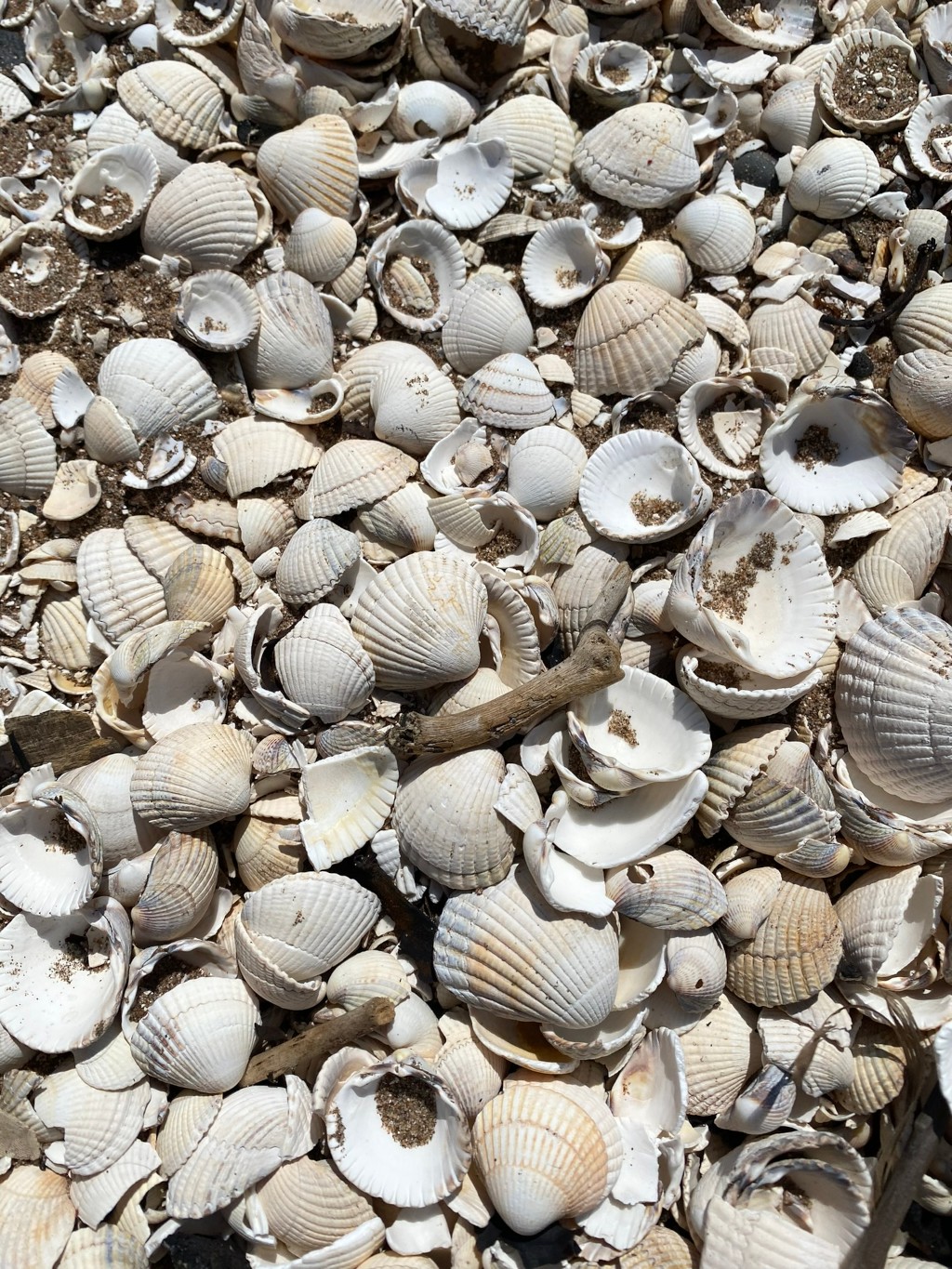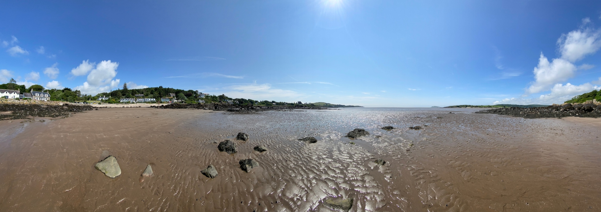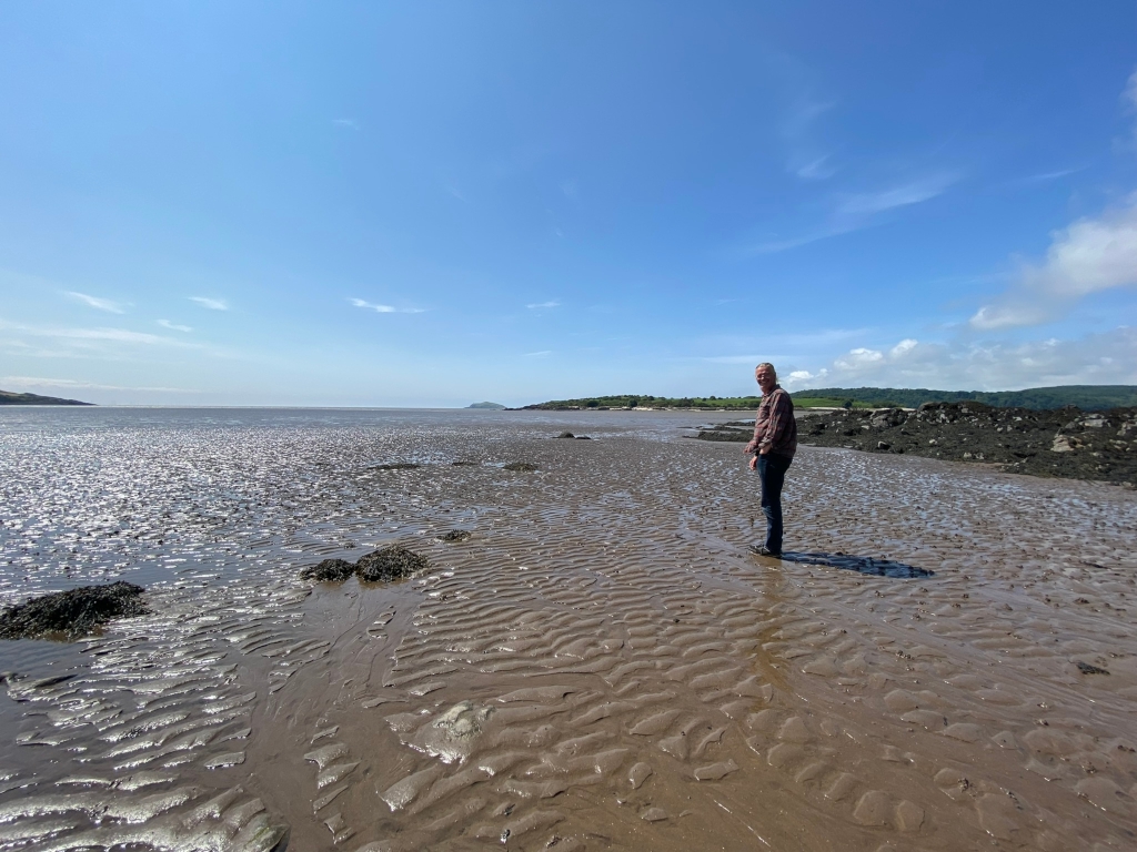 We travelled west to Rockcliffe, parked the car and walked some distance across the mud flats. On the beach, a woman with tattoos waited as if she were stuck with worry. Her dog made me think of a friend I lived with in Bath many years ago. Charlie commented on how sharp the crushed shells felt on his feet as they covered the shoreline.