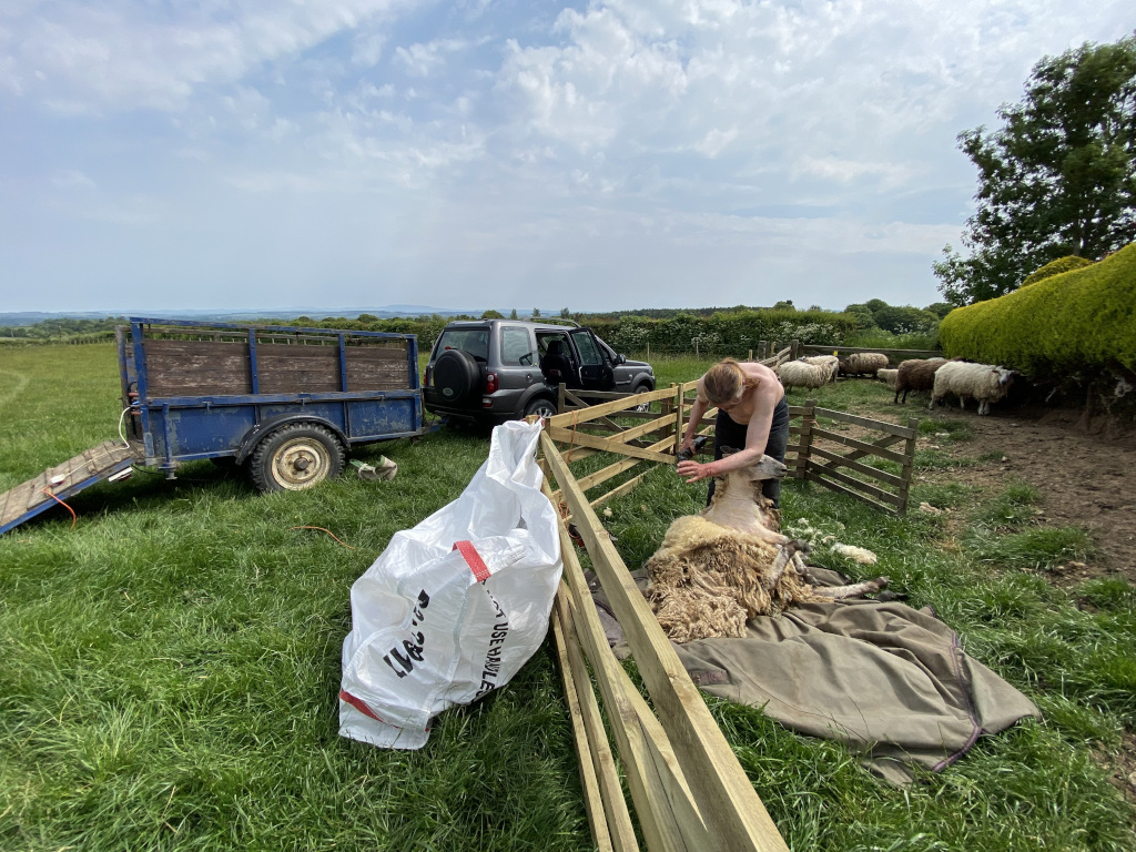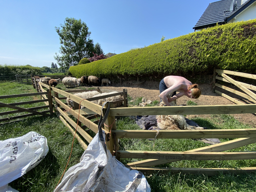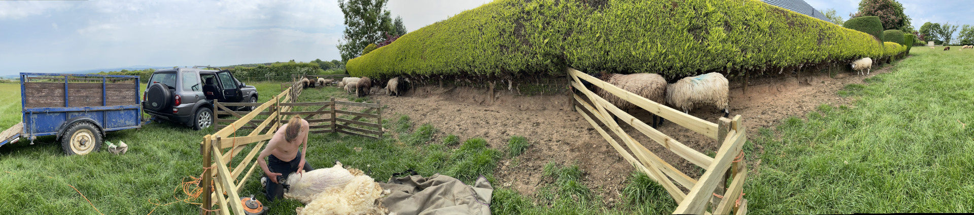 Charlie sheered sheep at the first grasskeep, after we errected a pen, we caught a third of the flock, baiting them with ewe nuts.