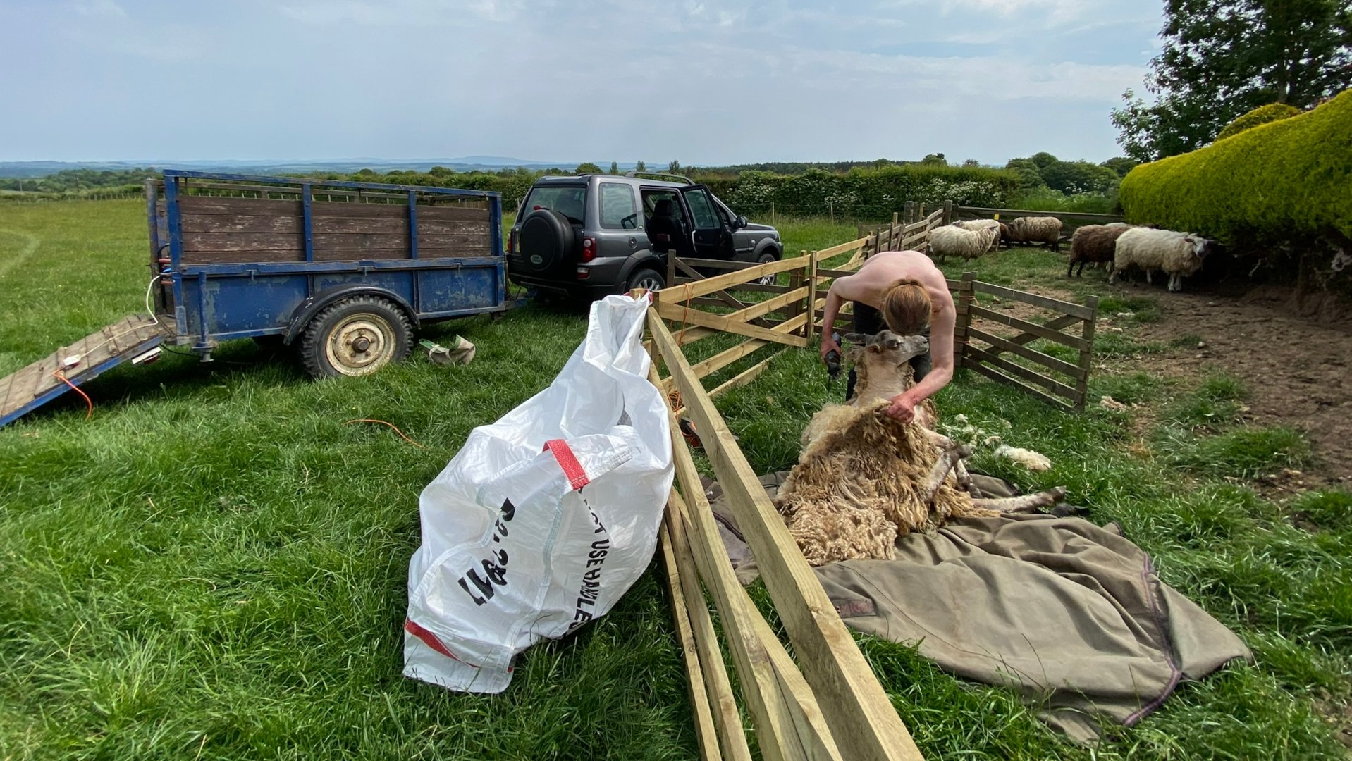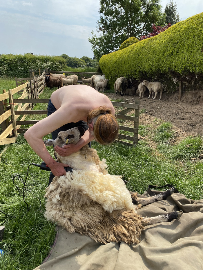We sheered Teeswaters, the wool from a pedigree was poor quality, she had almost died a few months ago; we sheared her first because she was covered in poop.