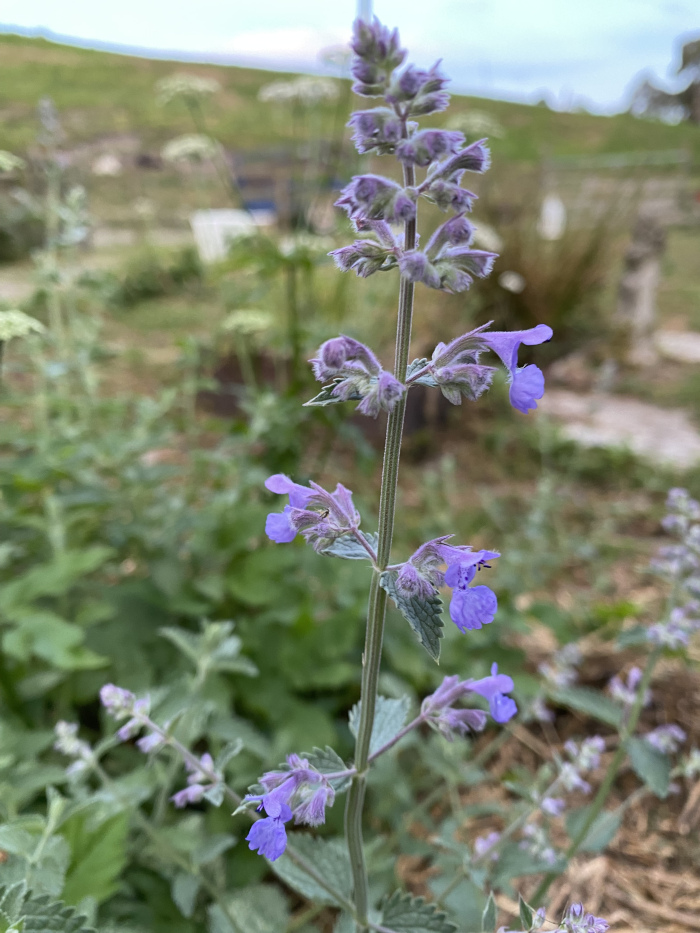 Every time I revisit the farmhouse garden I see beauty, today I was in awe of bright blue catnip flowers, and have only now just realised the honeysuckle hedgerow.