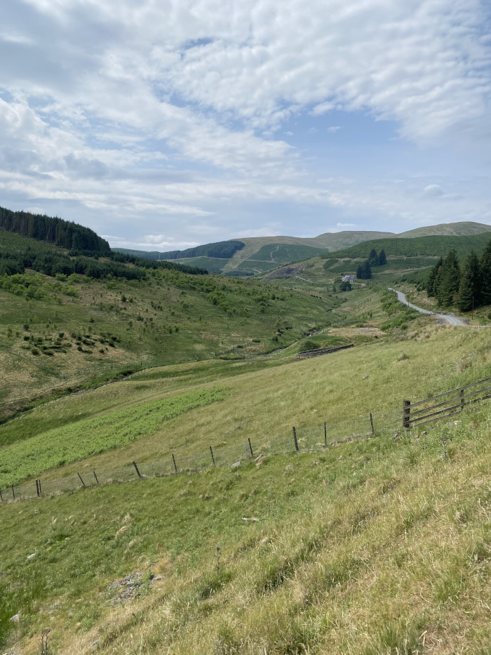 The Ettrick valley is beautiful, driving along a twisting narrow lane, passing a monument to James Hogg, the Ettrick Sheperd, we noticed a gaggle of sheperds wives gathered to observe a sheep dog trail below. The end of this public highway became a car park, before forking into forest track. Bewilded to see this gravel road go to Over Phawhope Bothy (MBA) 55.361°N 3.293°W; as I stayed a night there. Kept asking myself this question: why oh why was there no walk for me, through the Ettrick valley, exacting reception of inherent worth.