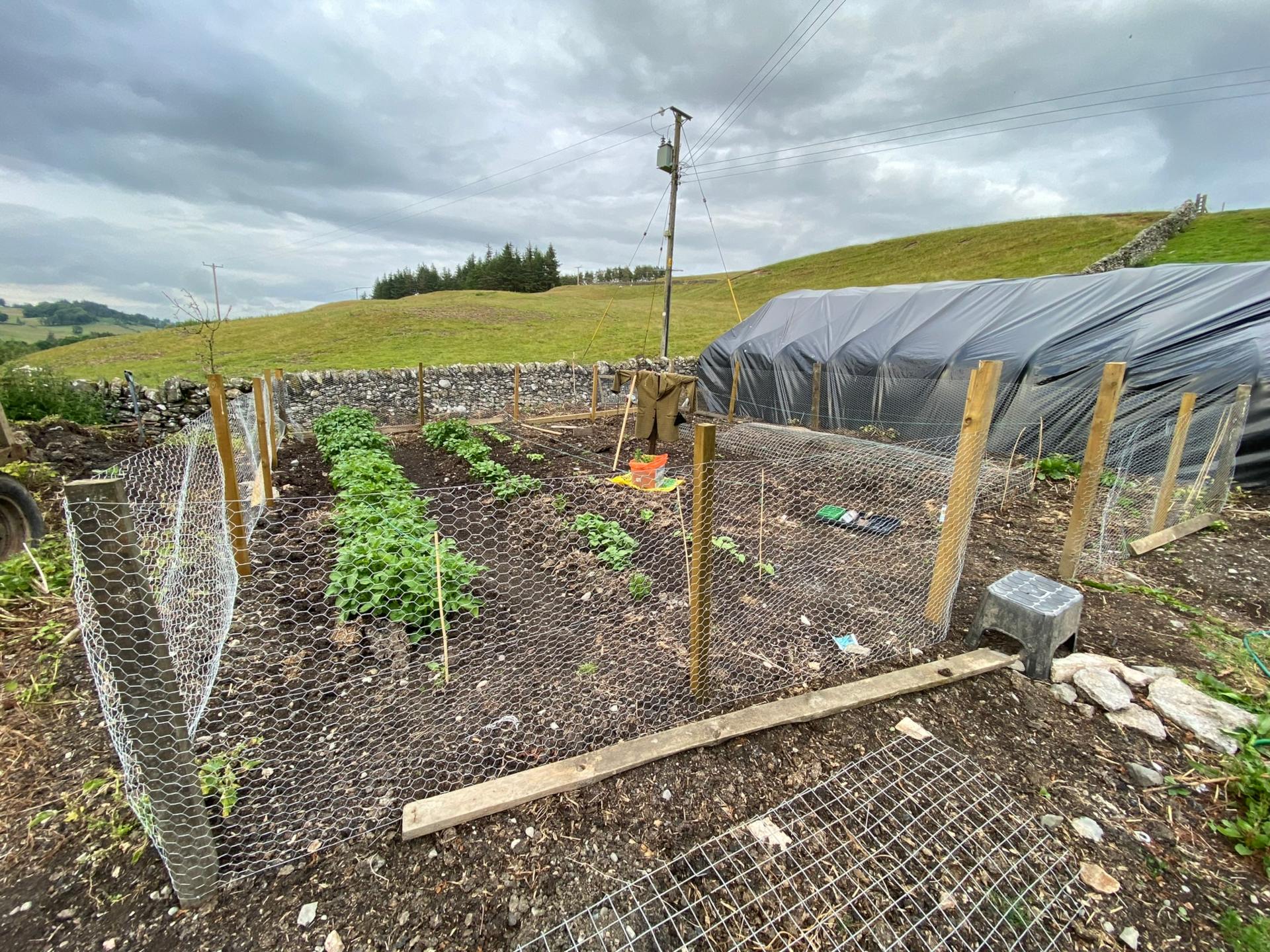 I've noticed considerable growth in our kitchen garden today, we almost have a complete green line of potato plants; Charlie keeps suggesting raising these beds to help the potatoes grow. We also have an additional two lines that are now sprouting beans and swede plants; surprising as we only sowed these seeds a mere few days ago! The onions we planted appear to have survived the ongoing attack; beyond scepticism, I suspect the common rider scarecrow helped thwart the attack significantly. Due to shortage of cash, from purchasing a used 4x4 car [the old Citroën Picasso required thousands of pounds of mechanic work to pass an MOT], we are yet to complete the Kitchen garden's surrounding fencing.