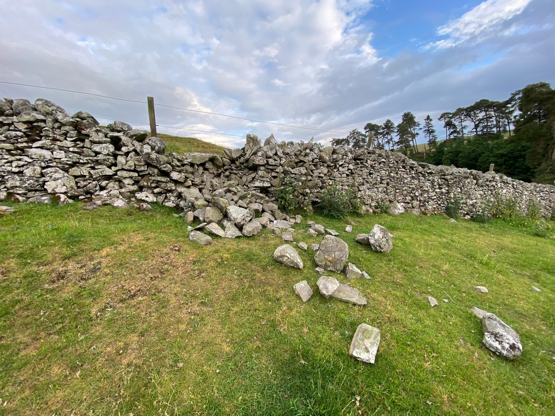 The nets have sagged, so Charlie is going to run wire across the top. He saw that part of the stone walling had been destroyed by the storm on Monday, and pieces of it had rolled down the steep slope of the paddock, making us worry about the lambs.