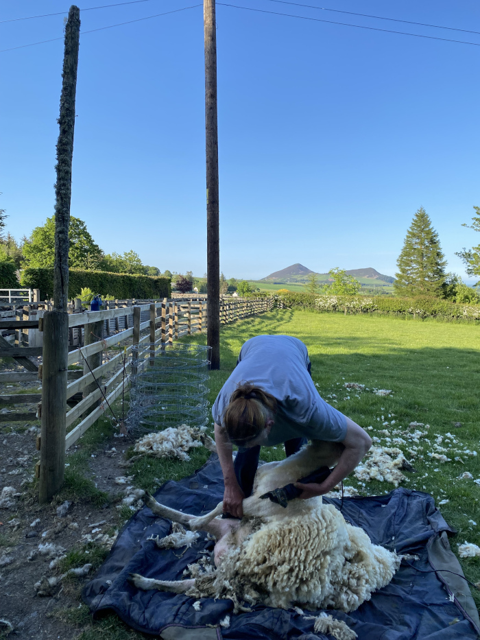 Charlie sheared a large ewe throughly in seven minutes, which isn't bad for a man with health problems in his mid-fifties. We finished nine ewes a couple of hours before sundown; we drove to the farmhouse with four and a half bags of fleece which I plan to spin on a wheel. On the A699, nearing Selkirk we were aggressively tail gated, and dangerously over taken.