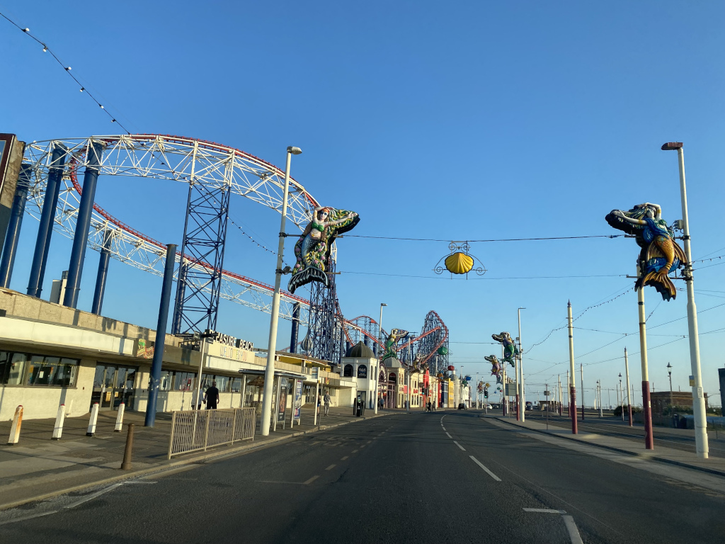 My mother used to bring me to this holiday resort; and walk me along the promenade to Blackpool Pleasure Beach. Today's sight saddened me deeply to witness many derelict buildings, between viewing creations revering a once prosperous and vibrant legacy of experience that so many white British families enjoyed and treasured in memory with fondness. Reminiscent memories appearing from Blackpool's dreamy coastline broken abruptly by edginess provoked by waling sirens from several police cars, and then two coastguard cars.