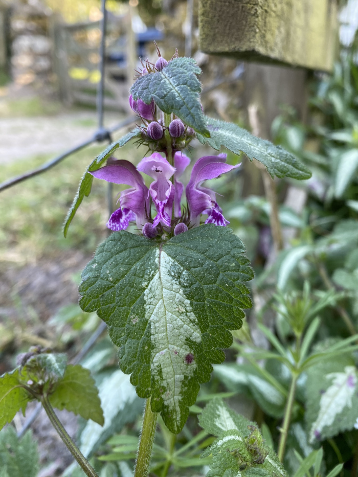 The farmhouse is very peaceful, and I do get some respite there from the endless compartmentalised thoughts environmentally triggered and recalled since the non-stop stalking [explained briefly above] began. Natural scents and colours from the farmhouse garden are calming therapeutic to the mind [from my consciousness being perpetually overloaded], as if bringing me around, at least for a moment, from a vivid dissociate trance. Purple flowers have bloomed from the dead nettles, they are very pretty; our rose hedge has also begun to bloom white flowers that are very similar to calm scented, pink roses I've found on the coast of Aberdeenshire; during month long rambles from the Brock to Banff, from July last year.