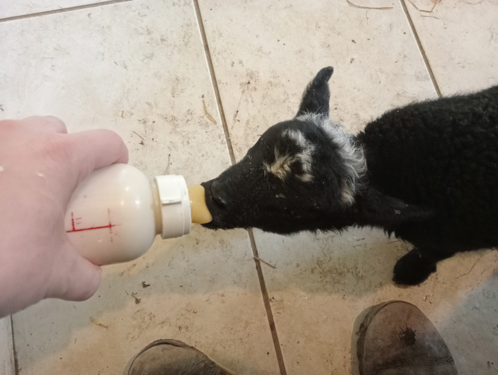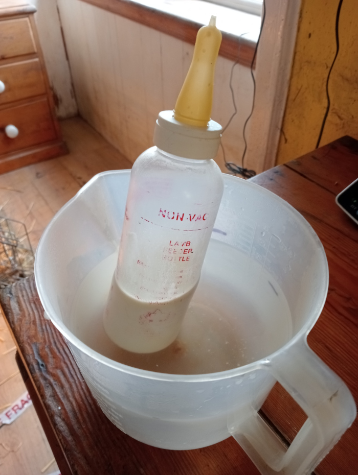Woke at 6:30am, unable to sleep. As I approached the staircase, the cade lambs resumed their request for feeding. The younger cade, although associative was not taking to the milk, Charlie solved this problem by pointing out the milk was not warm enough. Despite being cade the lambs still enjoy playing with the teat and bunting the bottle before they suckle. During feeding times I am still having to seperate the two, because the newest cade is weak, in comparison to our first cade.