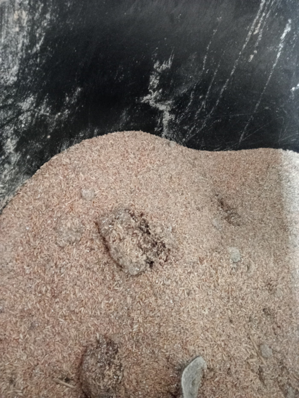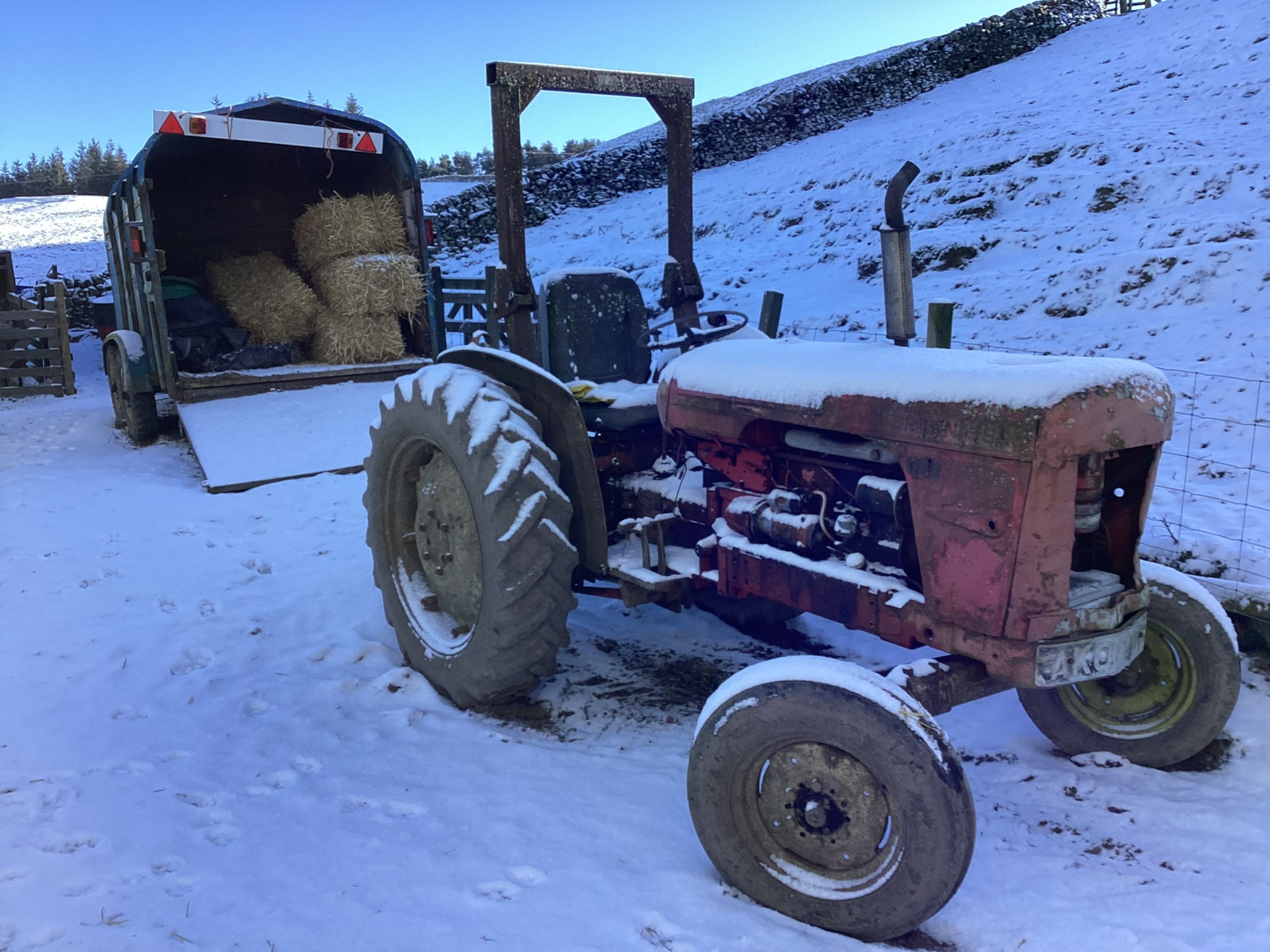 We dug out and filled six bags of Chafff then loaded a bail of Silage onto the car trailer. He reckons the quality ain't that great, and joked about the sheep getting drunk on it!