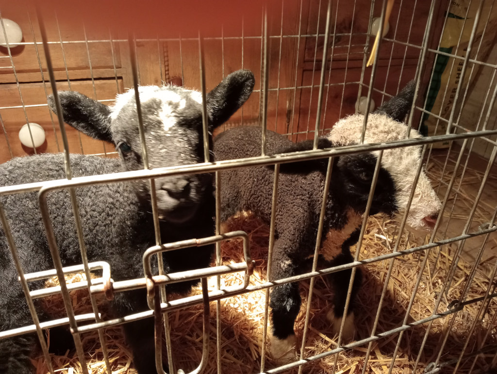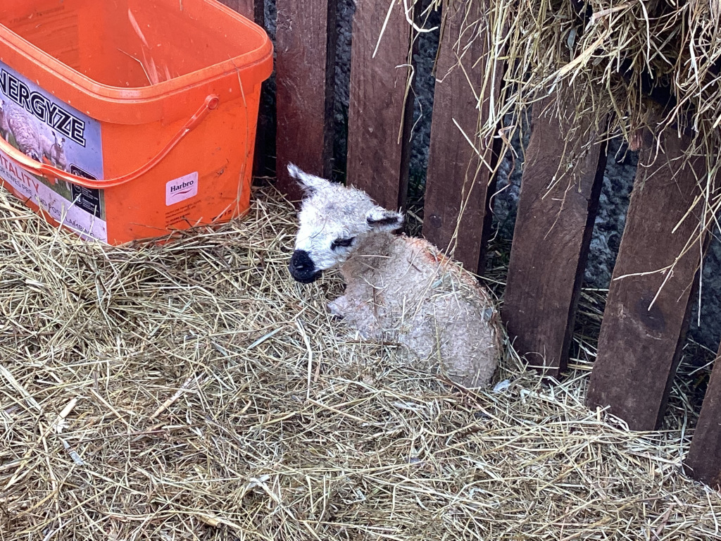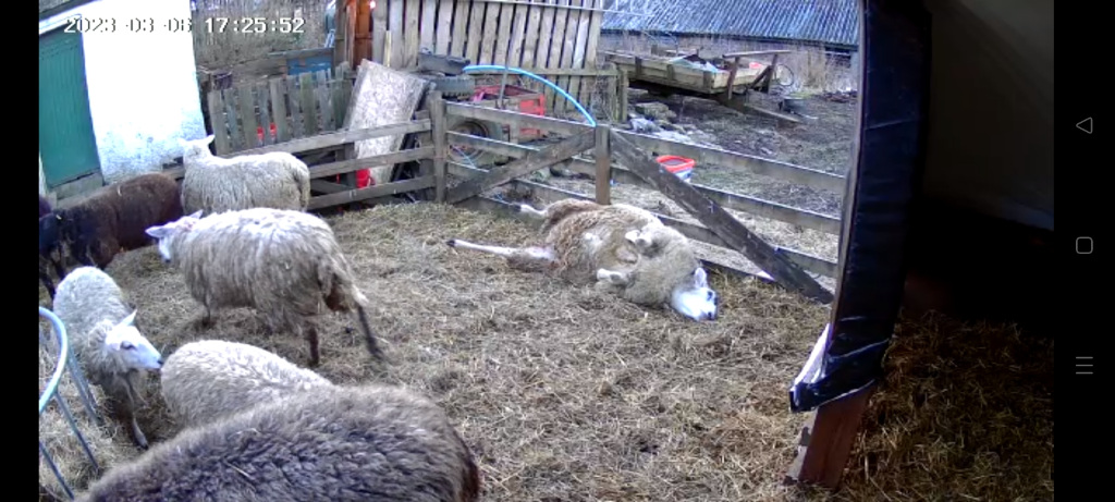 Later in the evening, another Zwartble lamb became cade. Mother ewe did not have enough milk for both her twins, so one came in and joined the lamb we saved; she's 3–4 days old. Whilst monitoring a ewe in labour, I filmed her birthing her lamb discreetly from the IPCam.