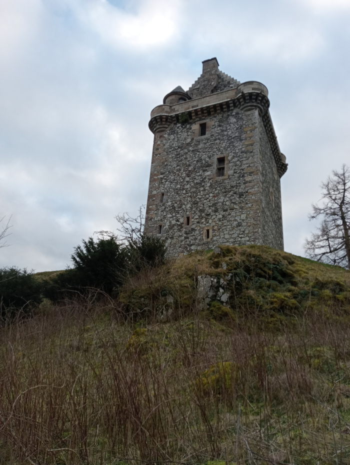 On the road to Jedburgh we drove past the tower of Minto, and planned to visit this landmark of fortifaction on our return to Hawick from Jedburgh. In the car park there was a notice, rising from bags of disregarded rubbish, describing the woodland area surrounding the tower as a SSSI. Unwelcoming was a "no" paragraph, declining camping, among other proscibed activities upon the land. I wondered who else was at the tower, in observance of two other parked cars.