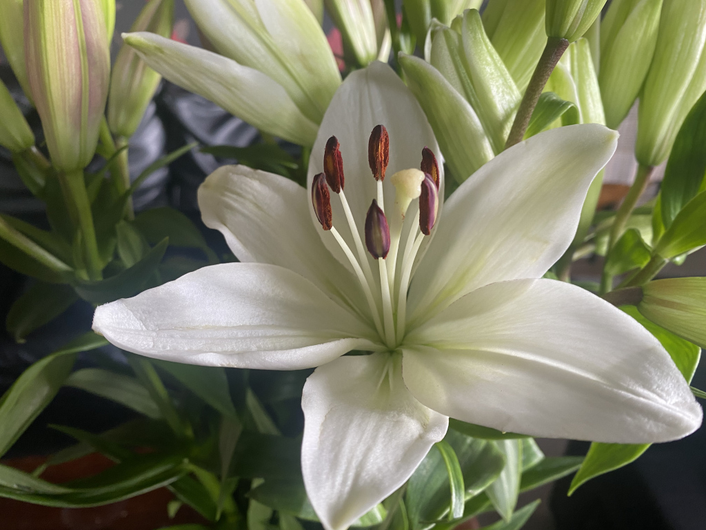 I have five hours to finish editing my blog today; I need to upload a few more pages before I clean up the remaining code. Now that this is done, I can focus on making new content. The gorgeous lilies that Charlie bought me yesterday are blooming this morning.