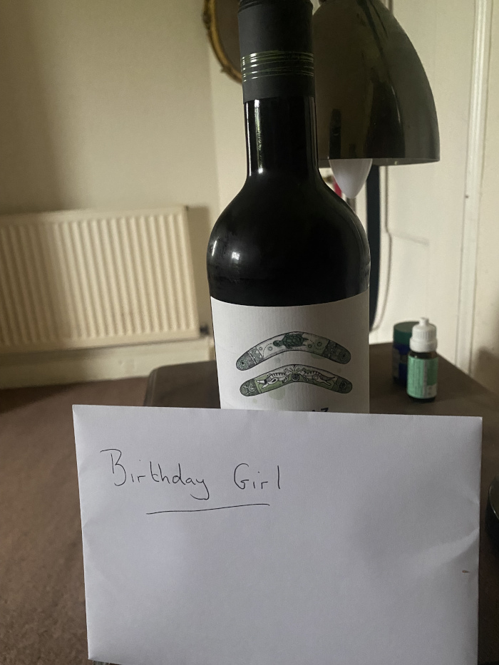 Today, Charlie awoke me with a bottle of wine and a birthday card that had been left on his doorstep by a friendly neighbour.