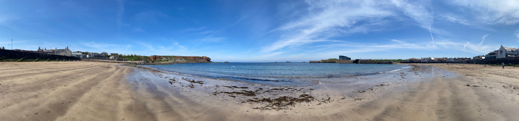 Thirteen pounds and twenty pence were the cost of coffee and cake at the beach café. I relished jam sponge, a dessert I hadn't had since I was in school, some thirty-four years ago. We travelled south via Eyemouth to Burnmouth, the final seaside town in the Scottish Borders before England. Now, this place was quiet, but this isolated space was not stagnated.