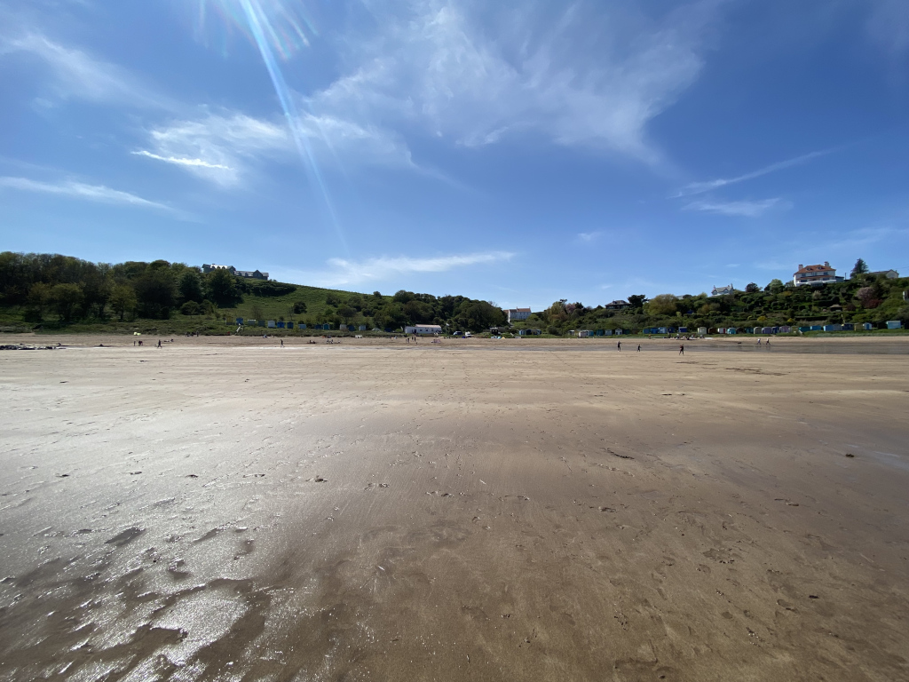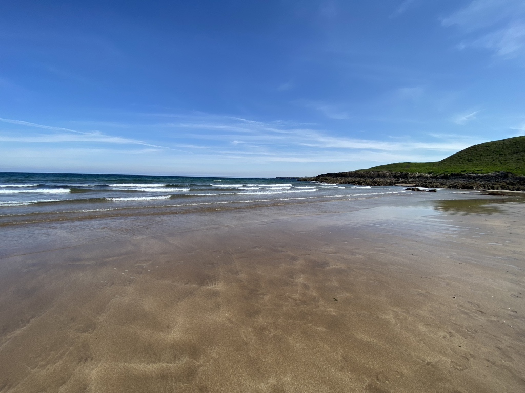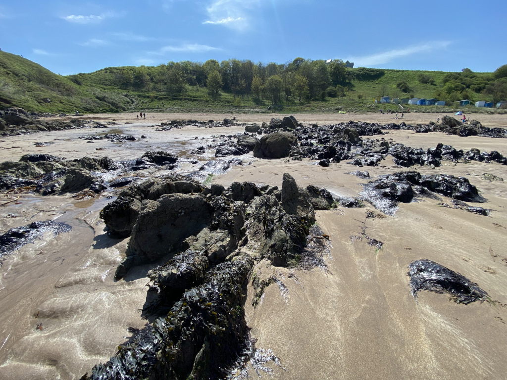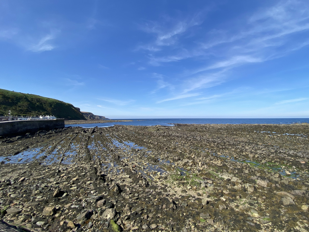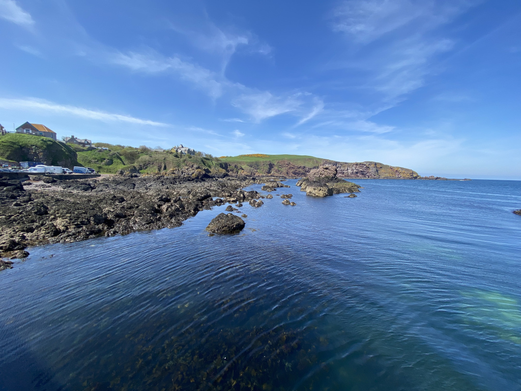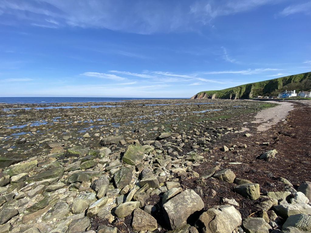 Due to a medication side effect, Charlie needed to use the restroom, so we took a car down to Coldingham Bay.