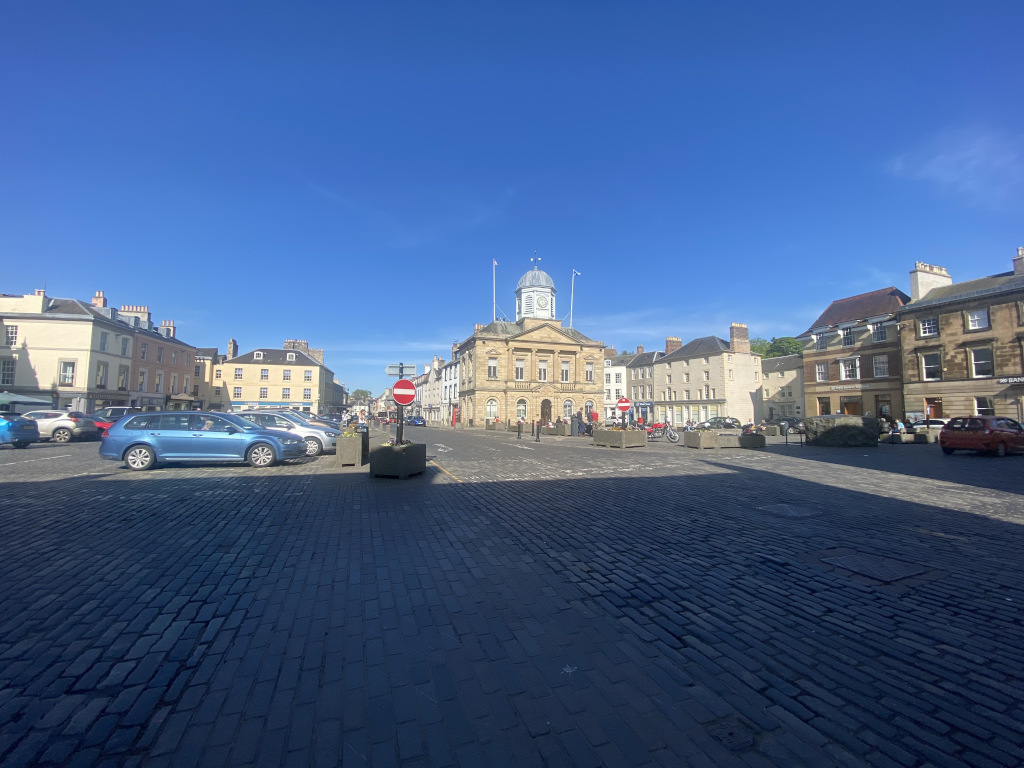 Searching for a cooked birthday meal, we went into Kelso. After exploring the market square, we came across a restaurant and placed an order for a generous portion of fish and chips.