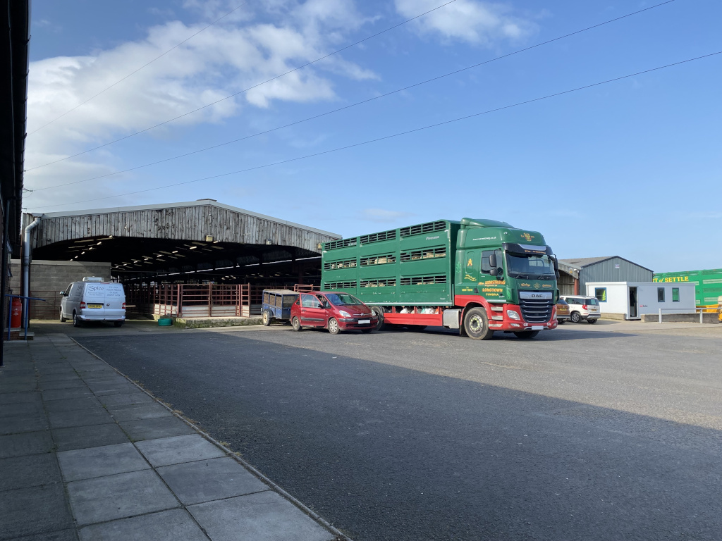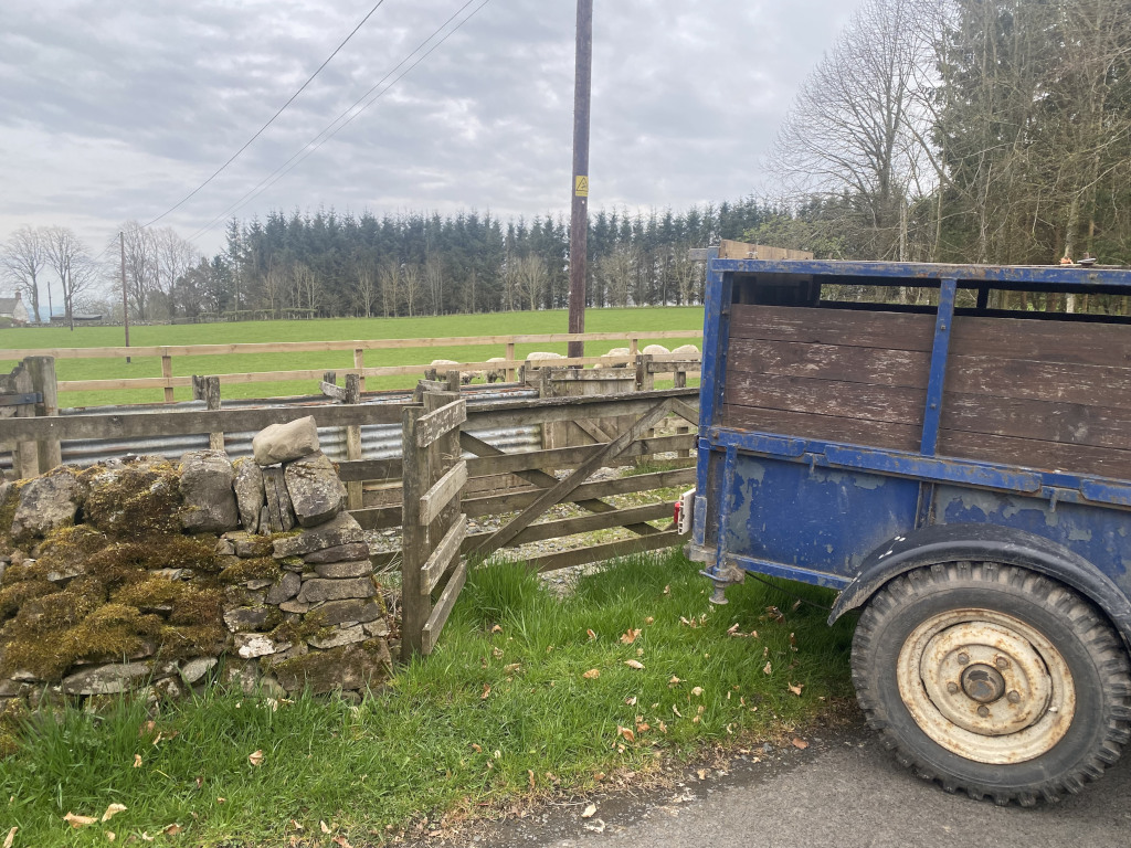 Risen at 6:30am to load and transport lambs and ewes to Longtown market. The A7 was empty between Hawick and Langholm, other than one speeding black mini car. We arrived early, I watched Charlie unload three ewes and lambs then show his transportation book.