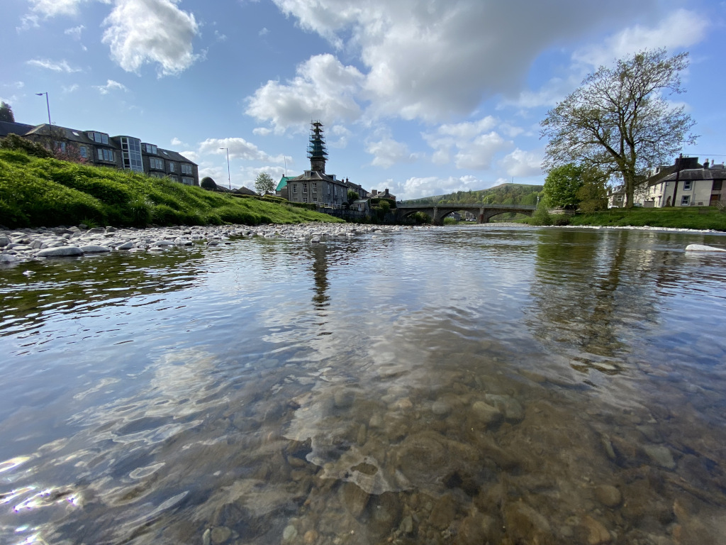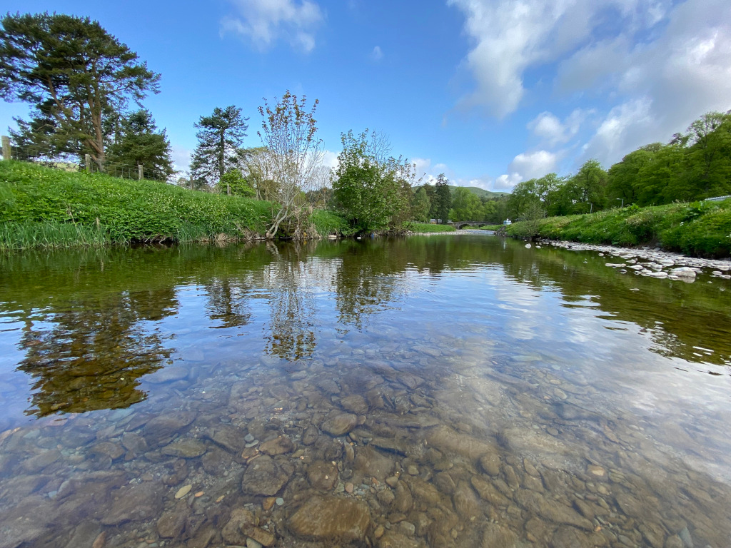The women in the cafe were unsociable, second visits are always sour, and I tasted that in the breakfast they served us. Returning to the farmhouse Charlie stopped at Ewes water to use the public facilities whilst I had took a foot dip into a shallow length of river.