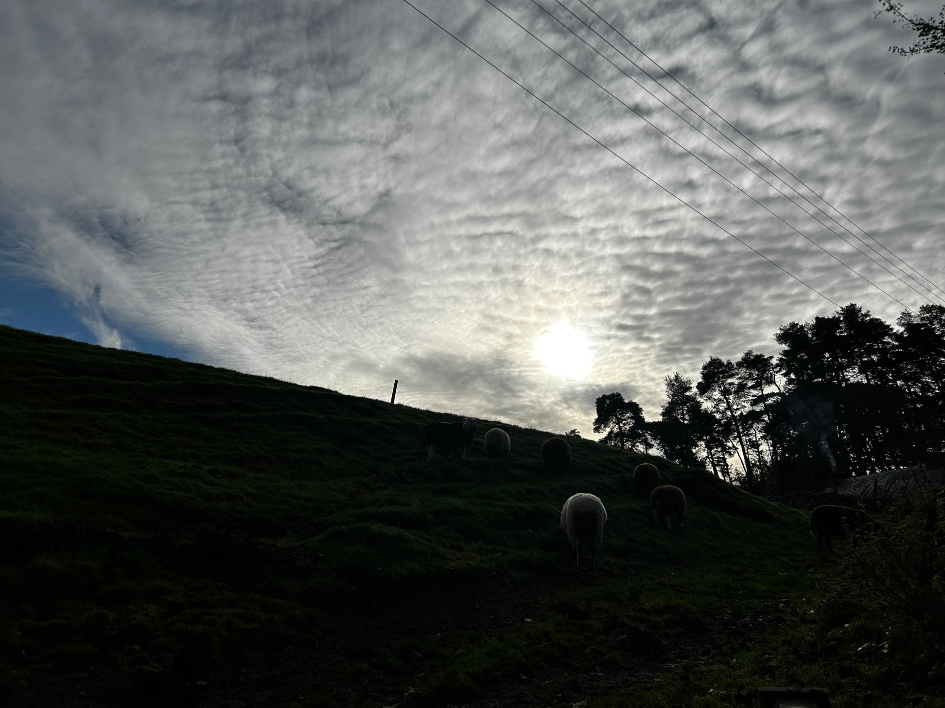 The sunset glow was warming through a dark chill of dusk. I shared the picture above with our friendly neighbours from the farmhouse cottages pictured.
