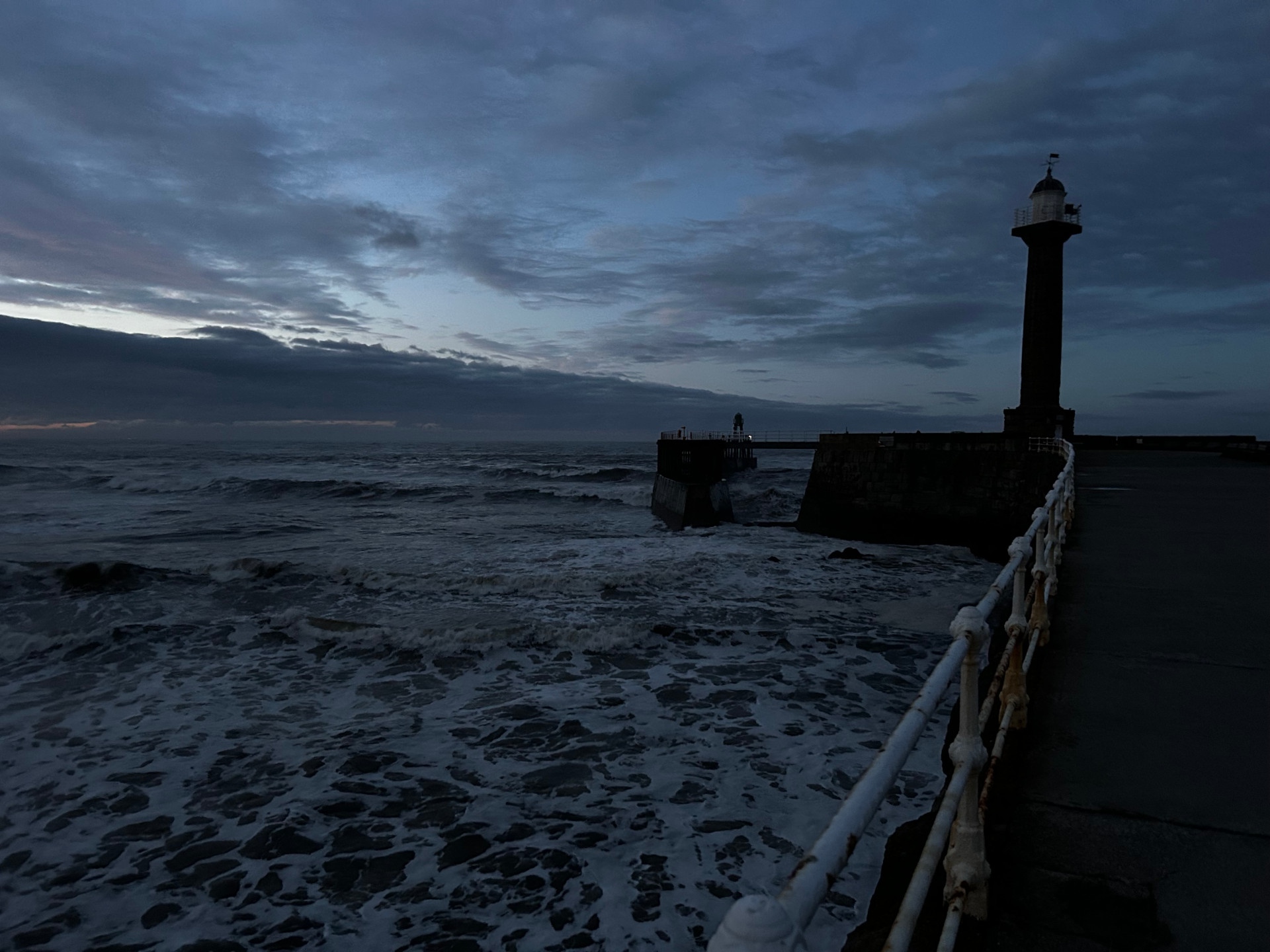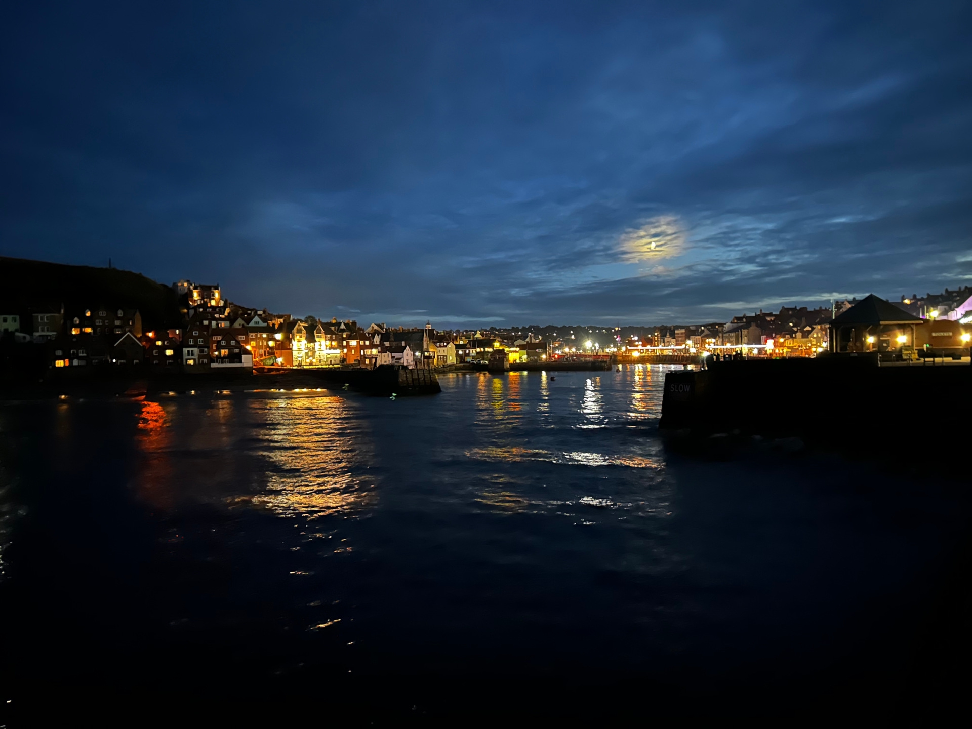 Dusk began to settle as we travelled over a northern ring road by Middlesborough. Initially we had planned to prebook bed and breakfast accommodation but chose to keep our travel plan secret, we thought better to book at the door. The accommodation I discovered via google maps in Robin Hood bay was full, there was also a music band playing there that night. We agreed to sleep in the car for a night, rather than spend £130+ on a small room for a mere several hours.