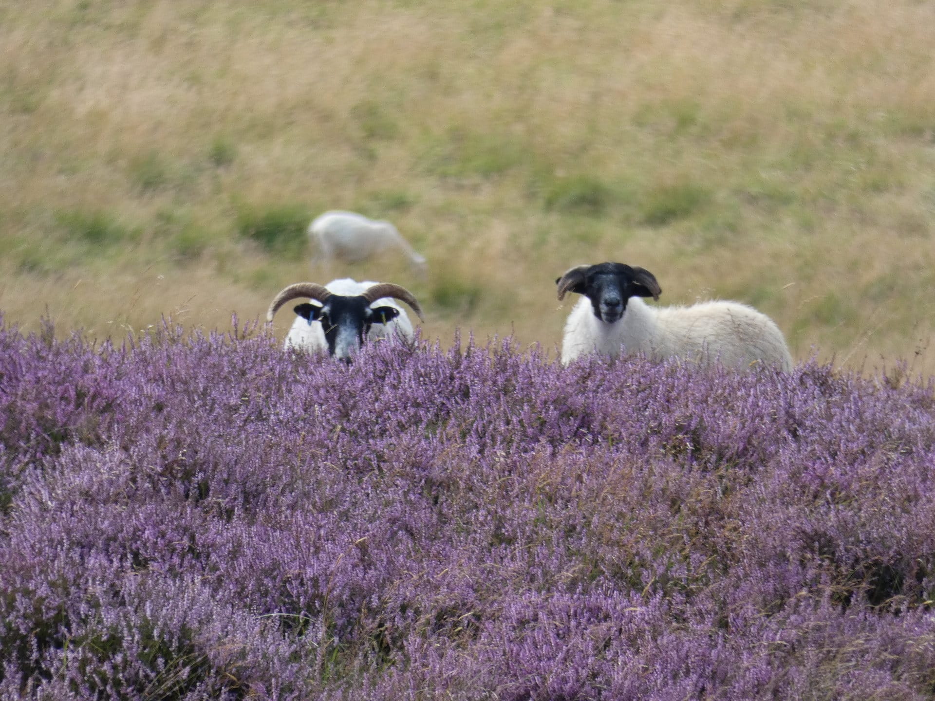 Scottish Black face sheep roam this land. The heather is beautiful.