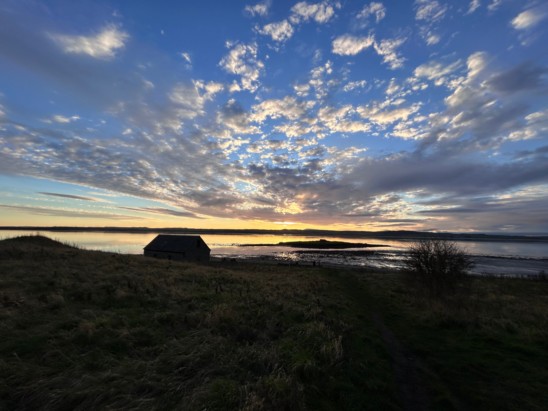 After purchasing a bottle of mead, we walked to the estuary where a sunset fell upon our faces, previously visiting we walked east, this evening we walked west.