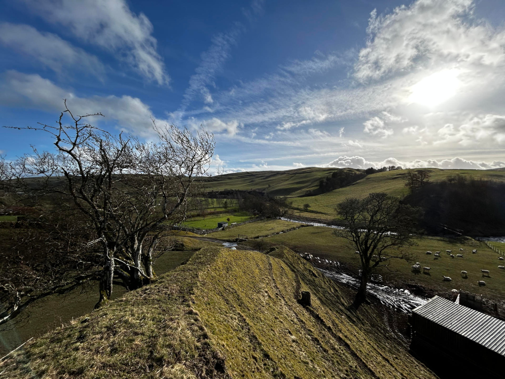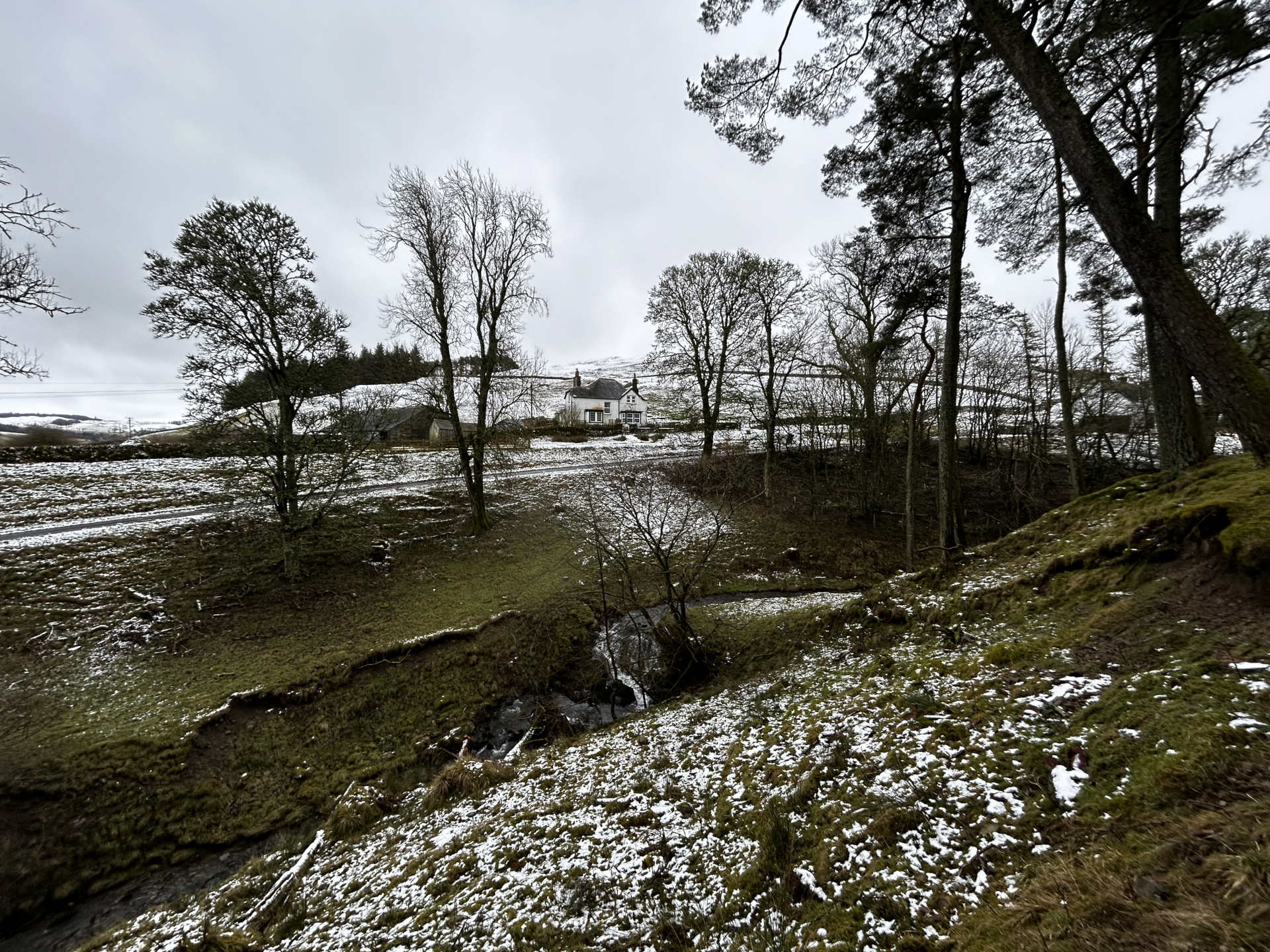The frost lingers throughout the daytime, as the farmhouse is shaded, seated on the northern side of Borthwick valley.