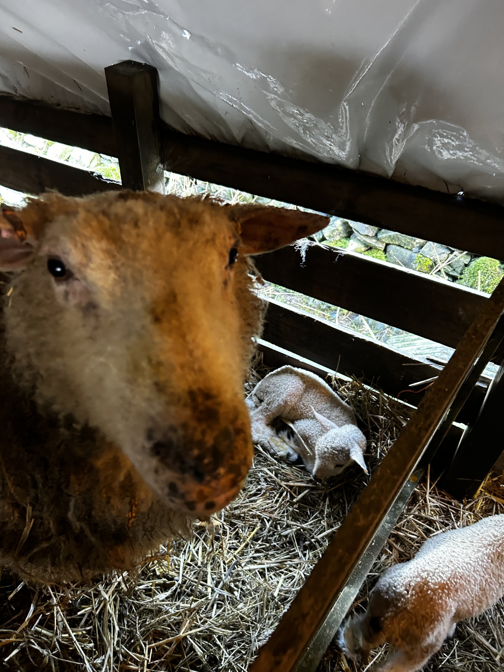 So far we've seen mother ewes giving birth to lambs sitting down, last year they stood up.