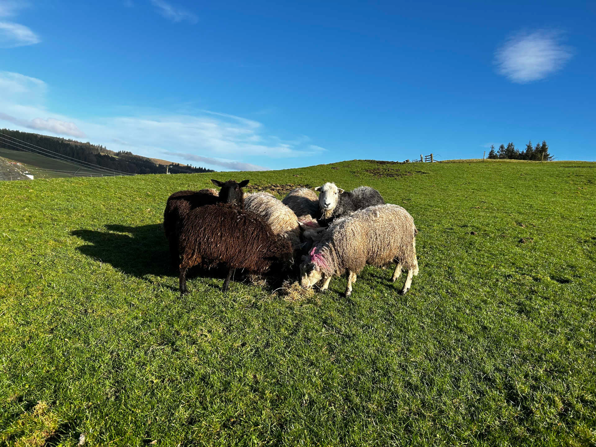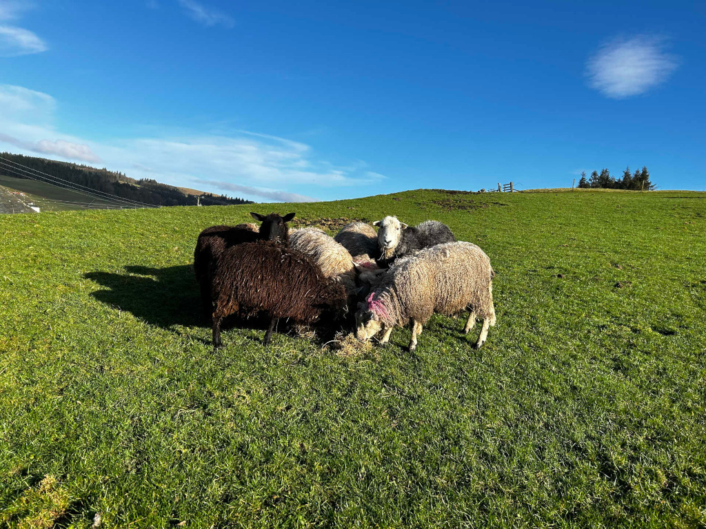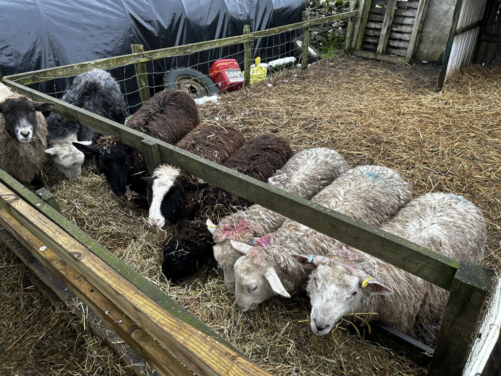 The grass on the paddock is very short, so I'm suplimenting the diet of the few sheep grazing here with haylage; other than one Herdwick, we don't believe these ewes to be in lamb.