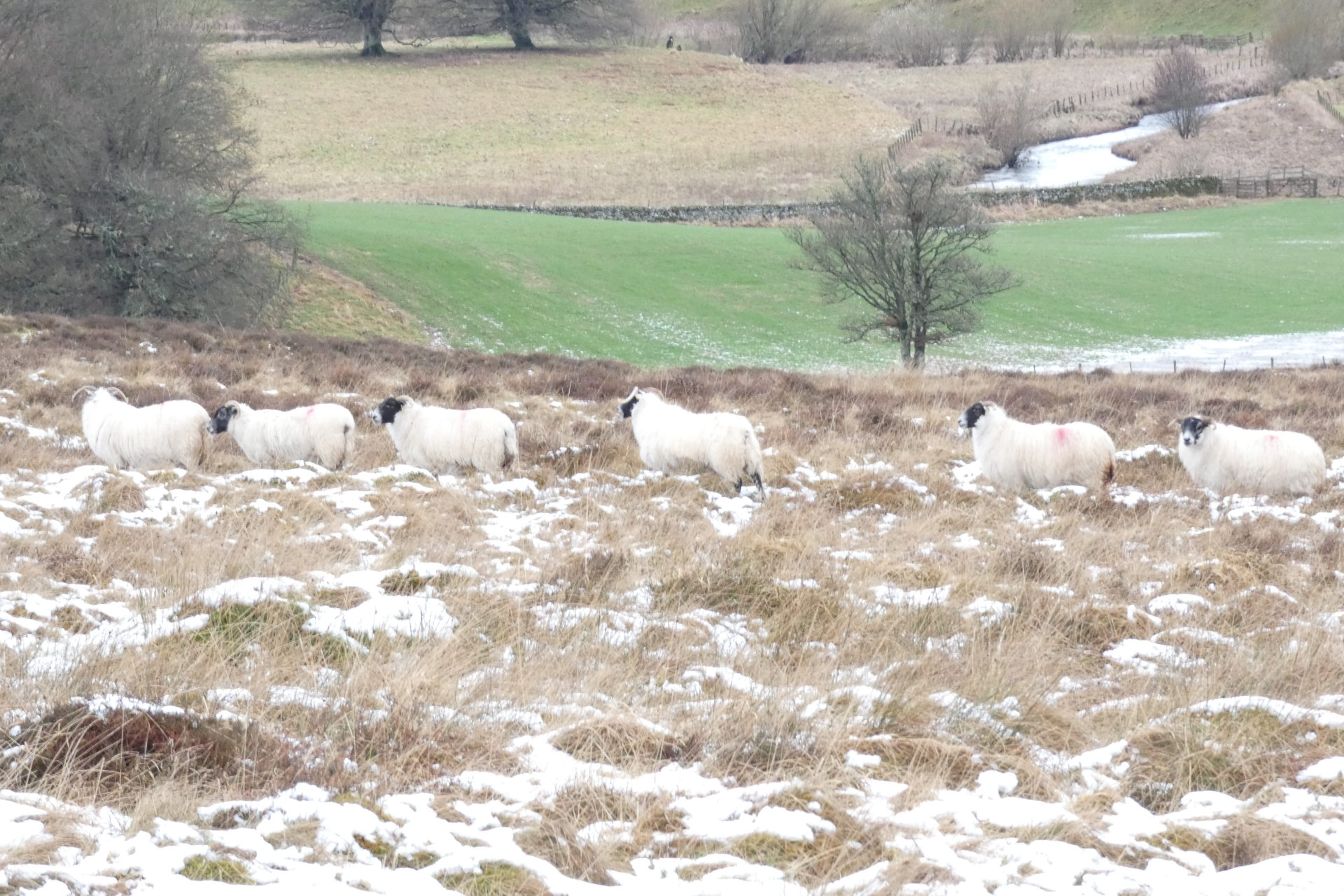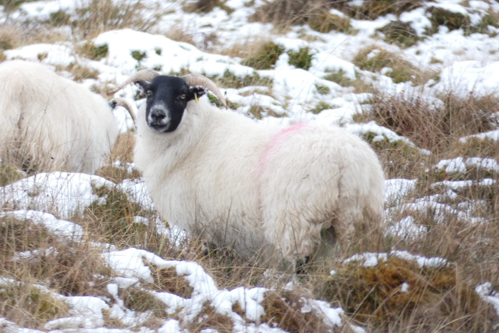 Attempted to take a few woodland pictures of Scottish Blackface sheep, but my bridge camera was stuck on manual focus. they are told to be one of the hardiest sheep breeds in the country; the Borthwick water is pictured in the background.