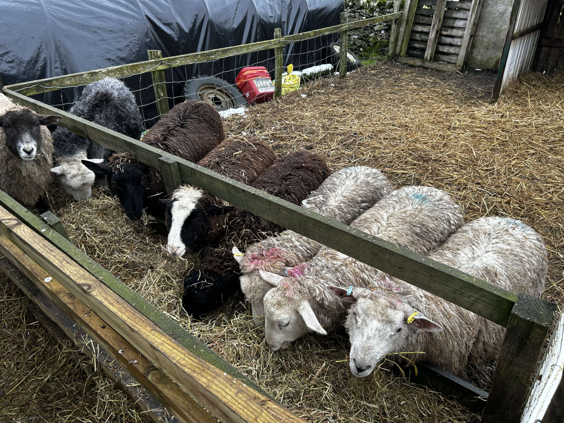 Fed the ewe lambs some haylage, can't feed them extra chaff, this would be too much of a good thing, could potentially kill them.