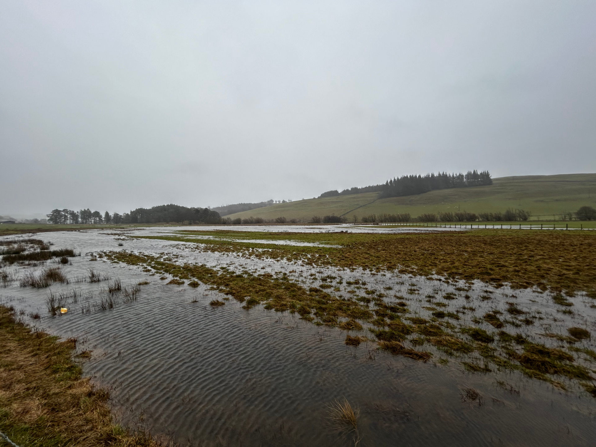 Big storm blowing throughout the Scottish Borders, wind and rain is rushing about walls, tearing across field, the Borthwick water below has burst banks. About eight inch deep for 1/6 of a mile, but thankfully could not lift our 4x4 from the direction. I posted a short reel on Facebook, readers were shocked, I don't know anywhere else that experiences this; although throughout the valley there are houses along the haugh, beside winding bends that could be in danger, if flooding as a release had not happened here.