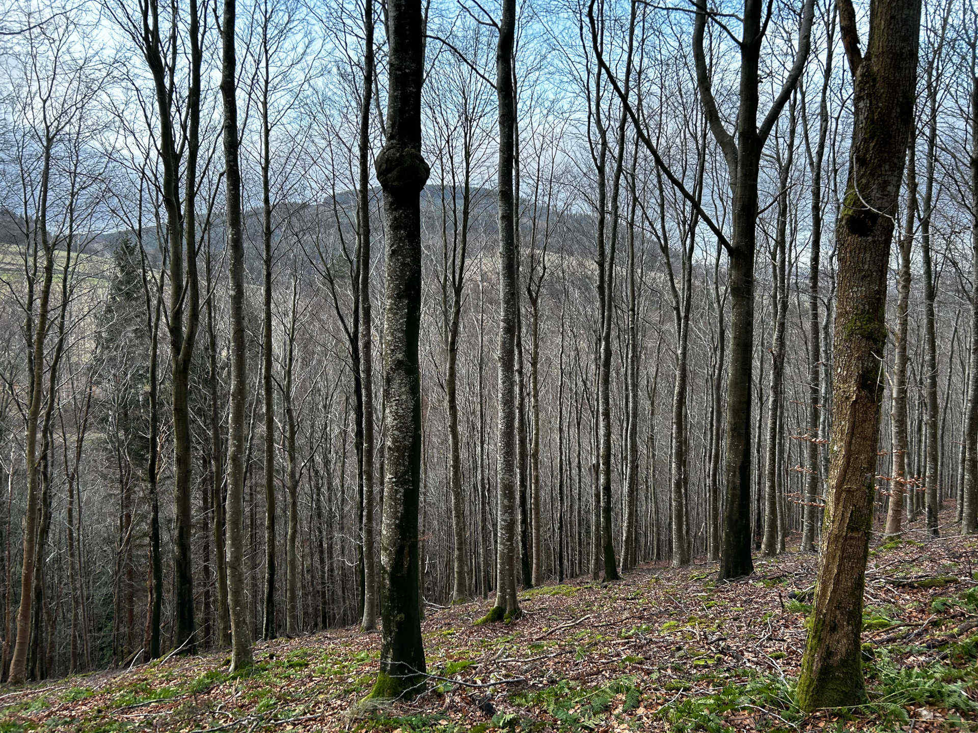 The walk took just over an hour, about two miles steady ascent along woodland path and road towards the summit.