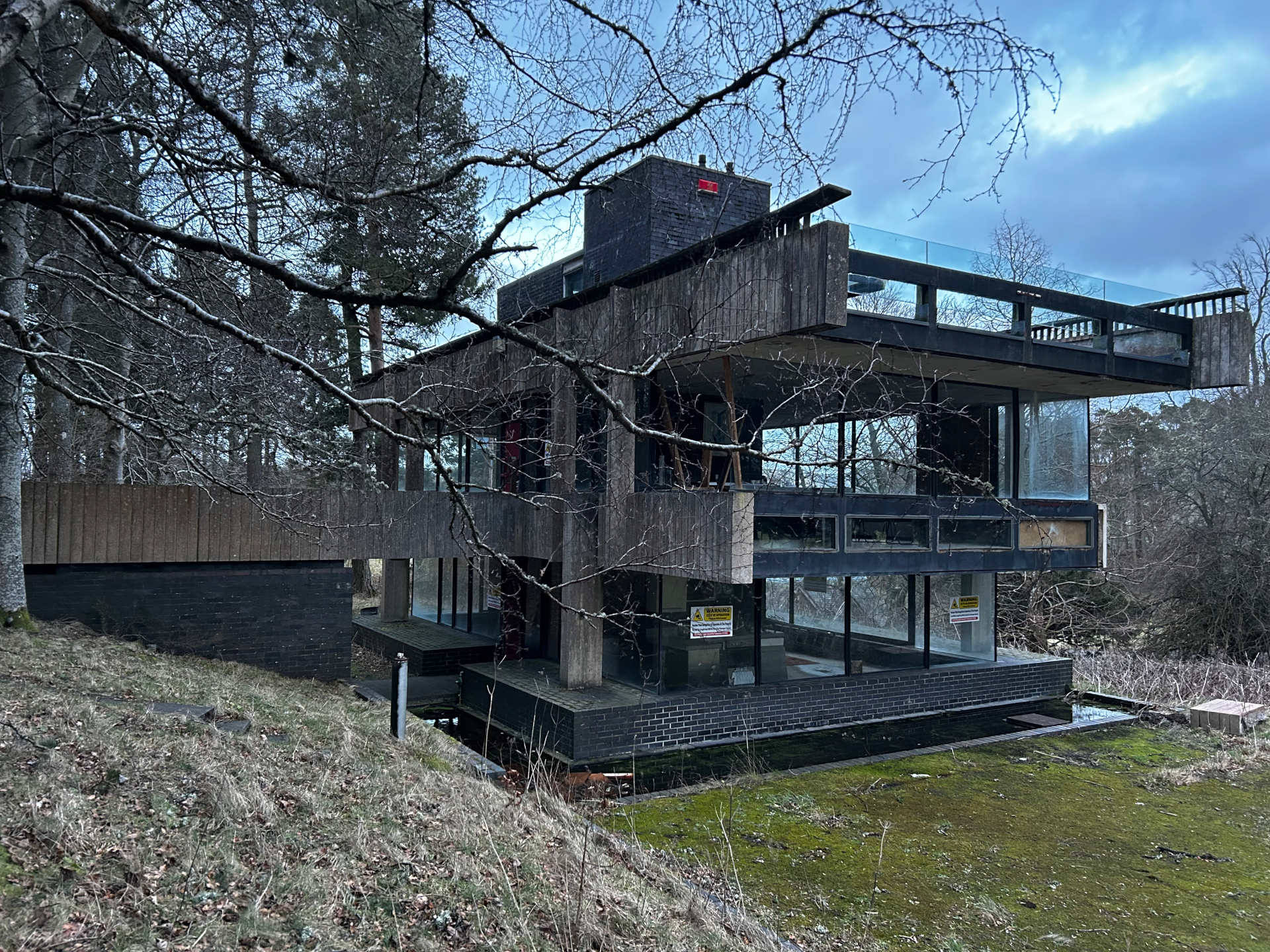 Building appears subsided; reminds me of a car park, akin to a school boiler house.